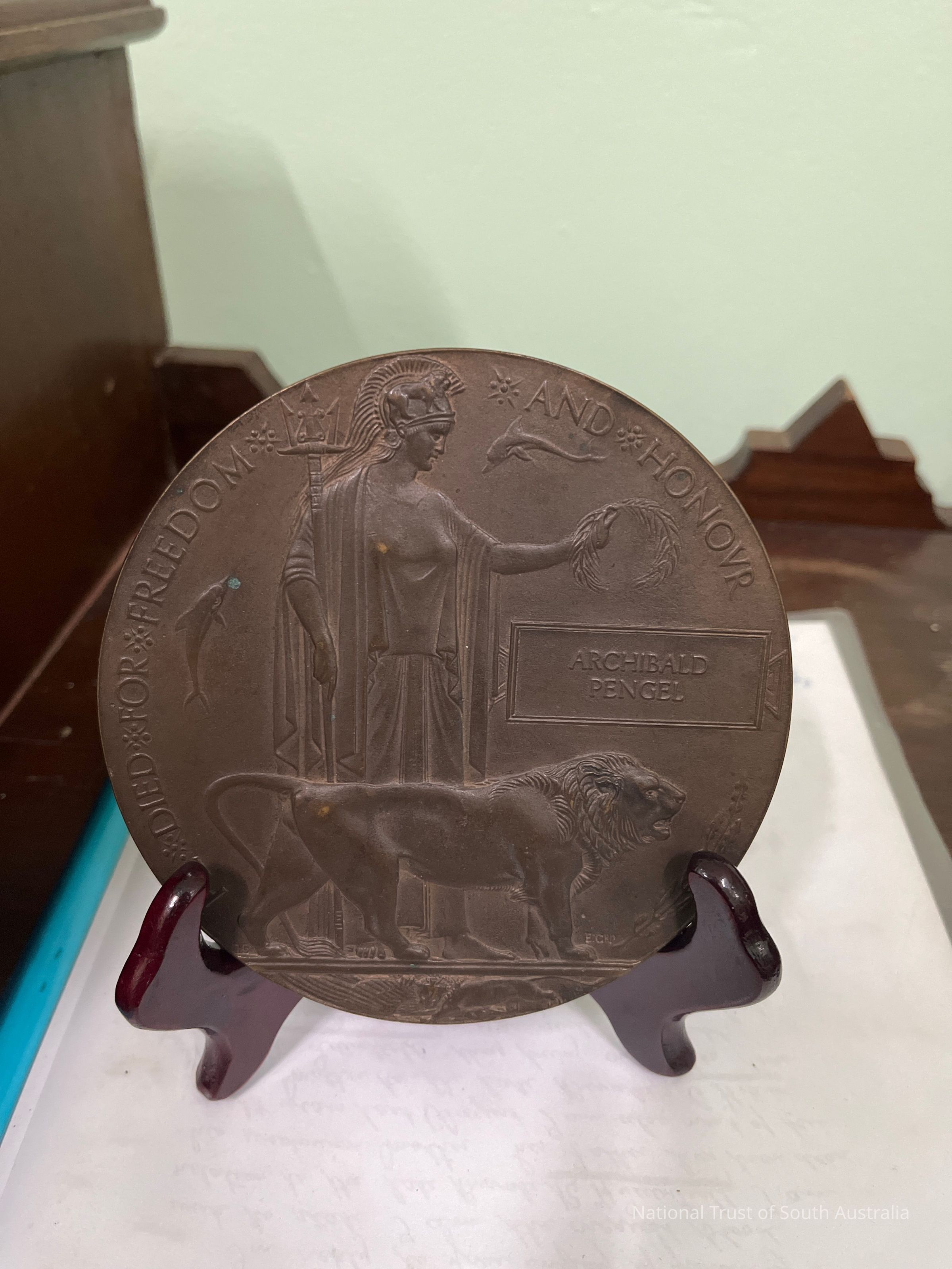 Memorial disc. Text: He died for freedom and honovr Archibald Pengel