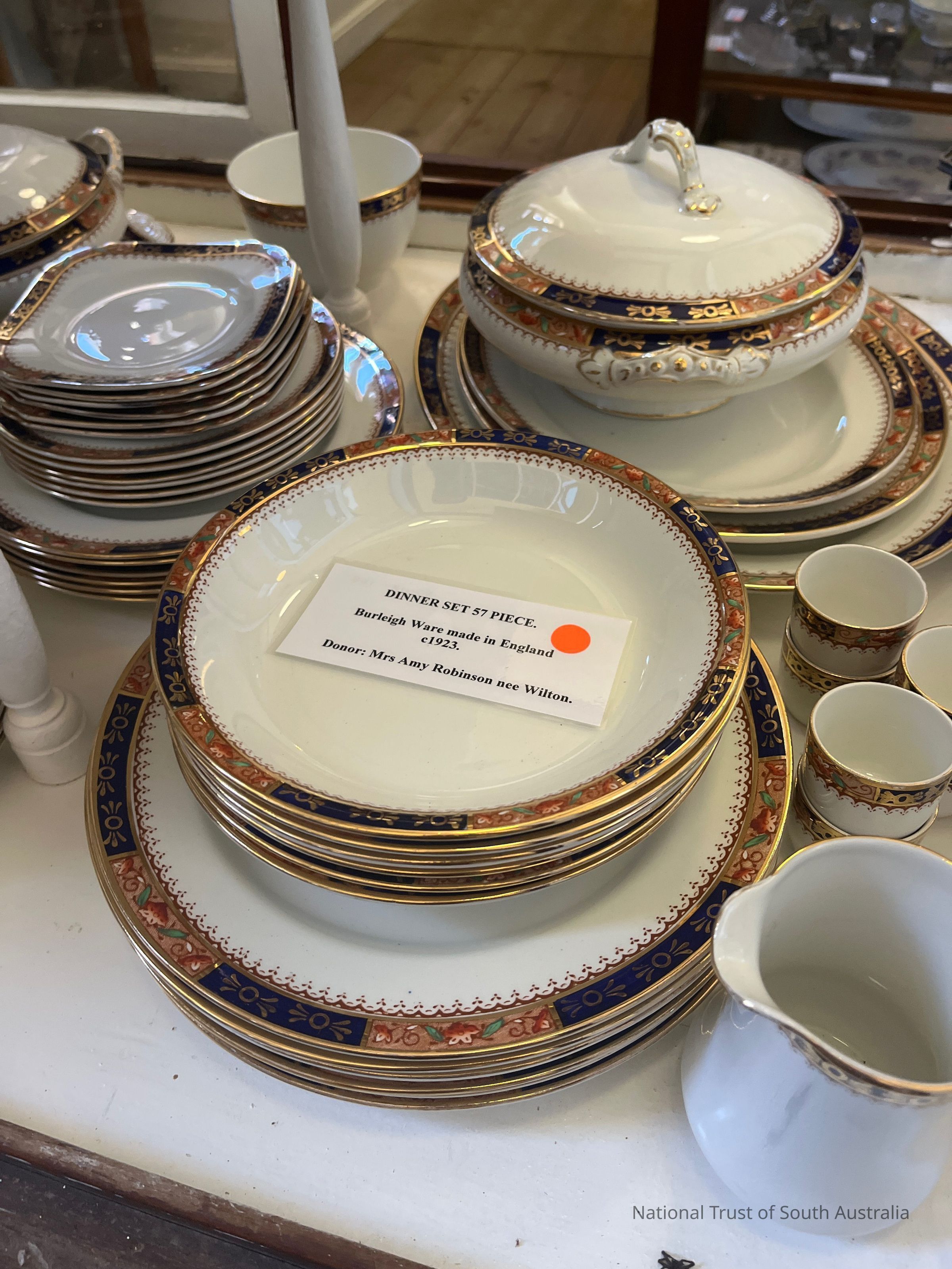 57 piece dinner set. Includes gravy boat, two serving dishes, four serving plates, one sugar bowl, six mugs, six egg cups, one milk jug, six saucers, six side plates, six small plates, six large plates and six bowlsCollection