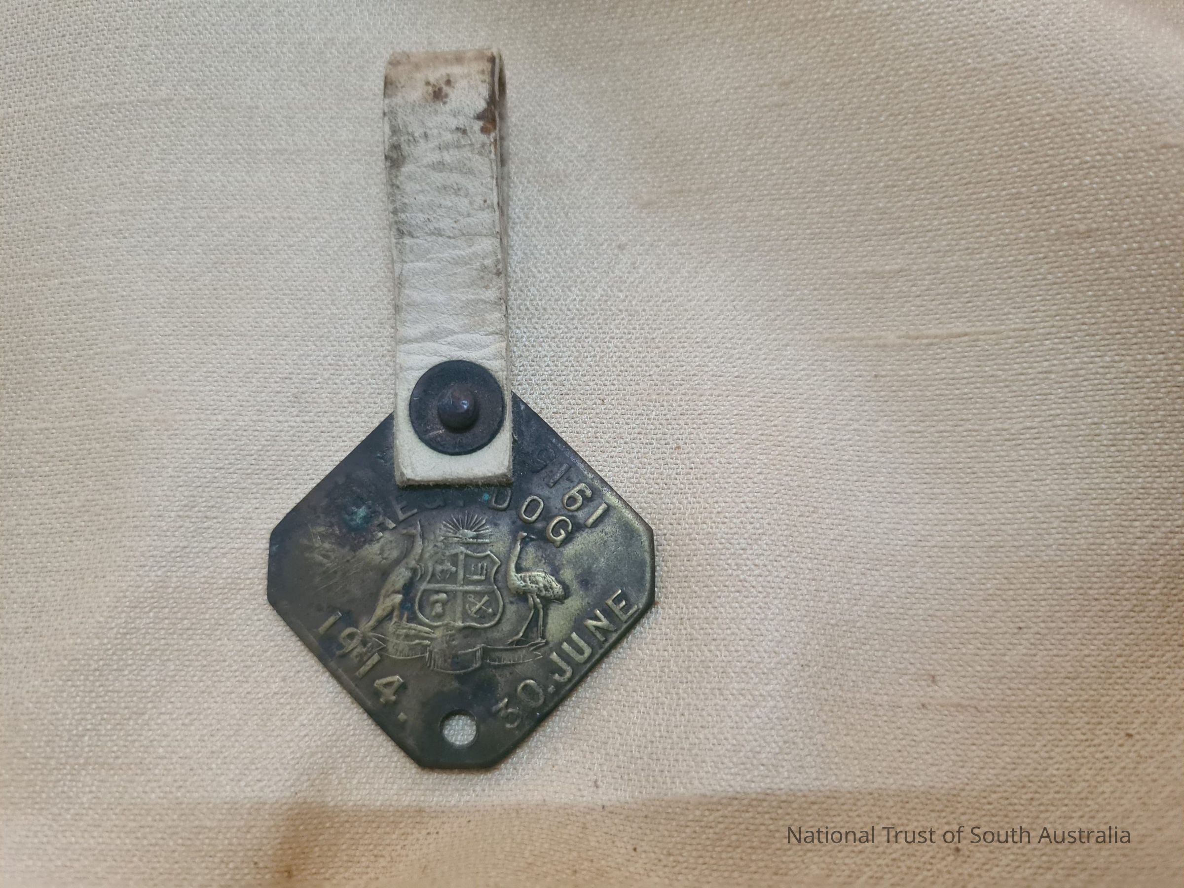 1914 Dog Registration Tag. Donated by Mr. F. Wilton