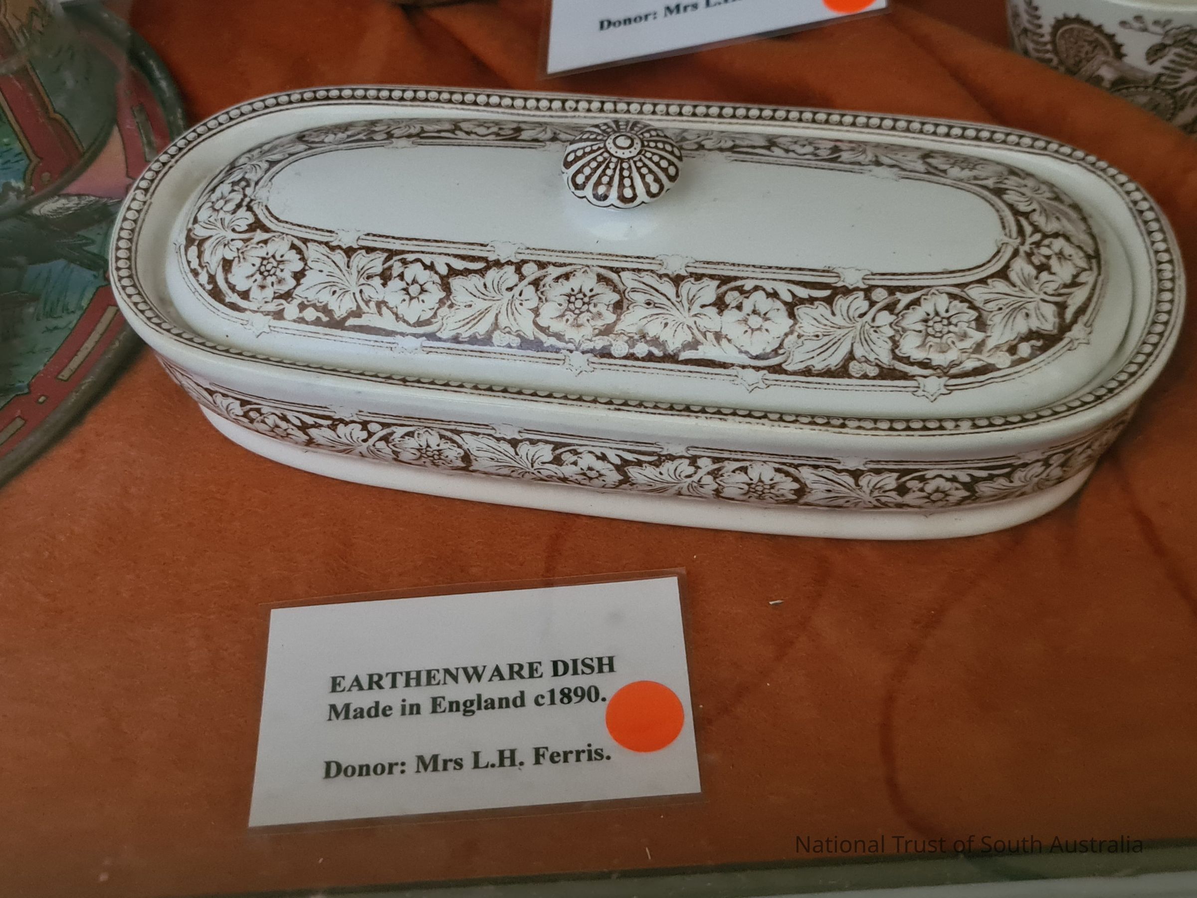 Earthenware dish. Made in England . 1890. Donated by Mr L.H. Ferris