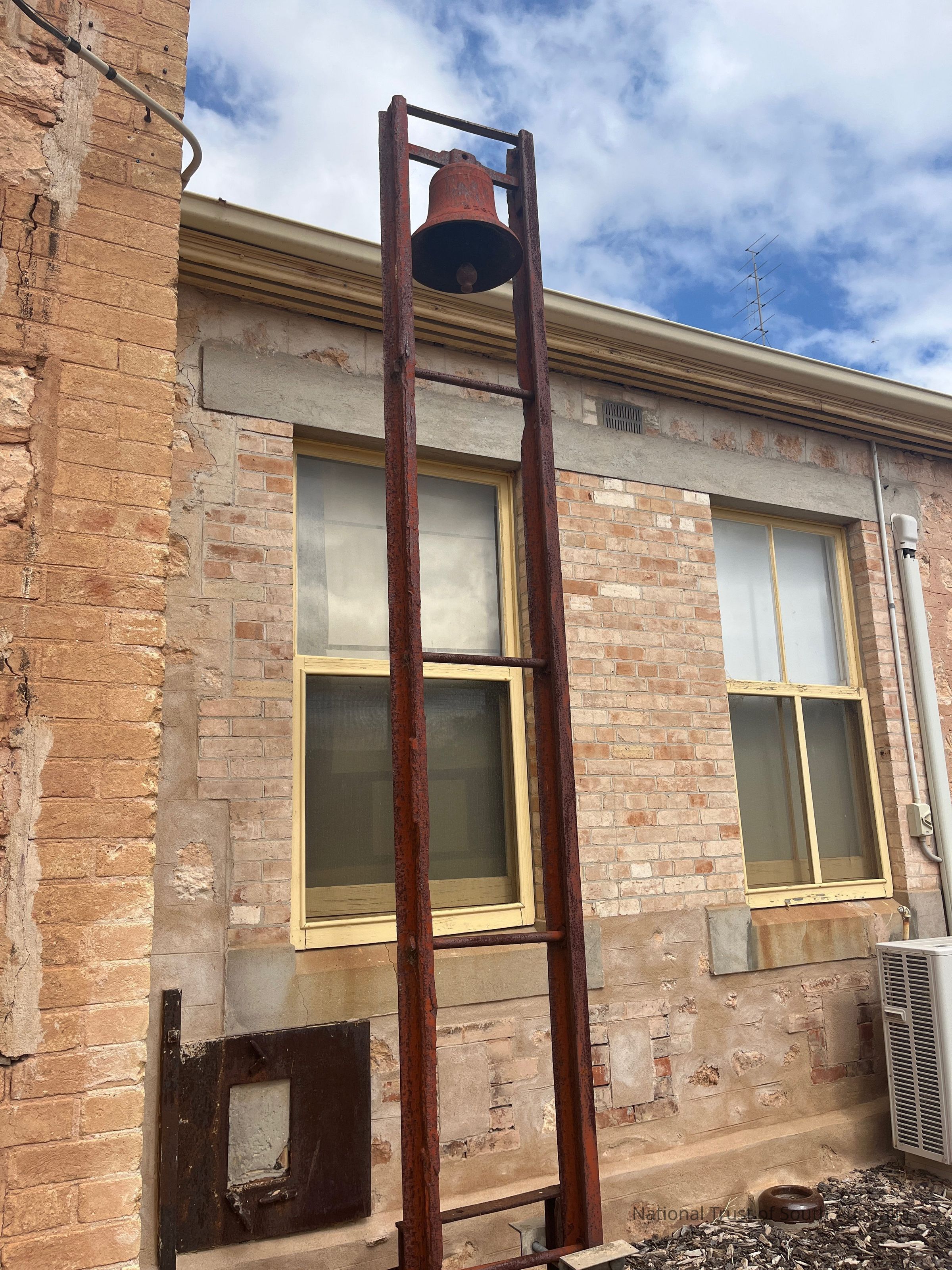 Bell from East Moonta Church, currently suspended on metal frame in the History Centre’s courtyard