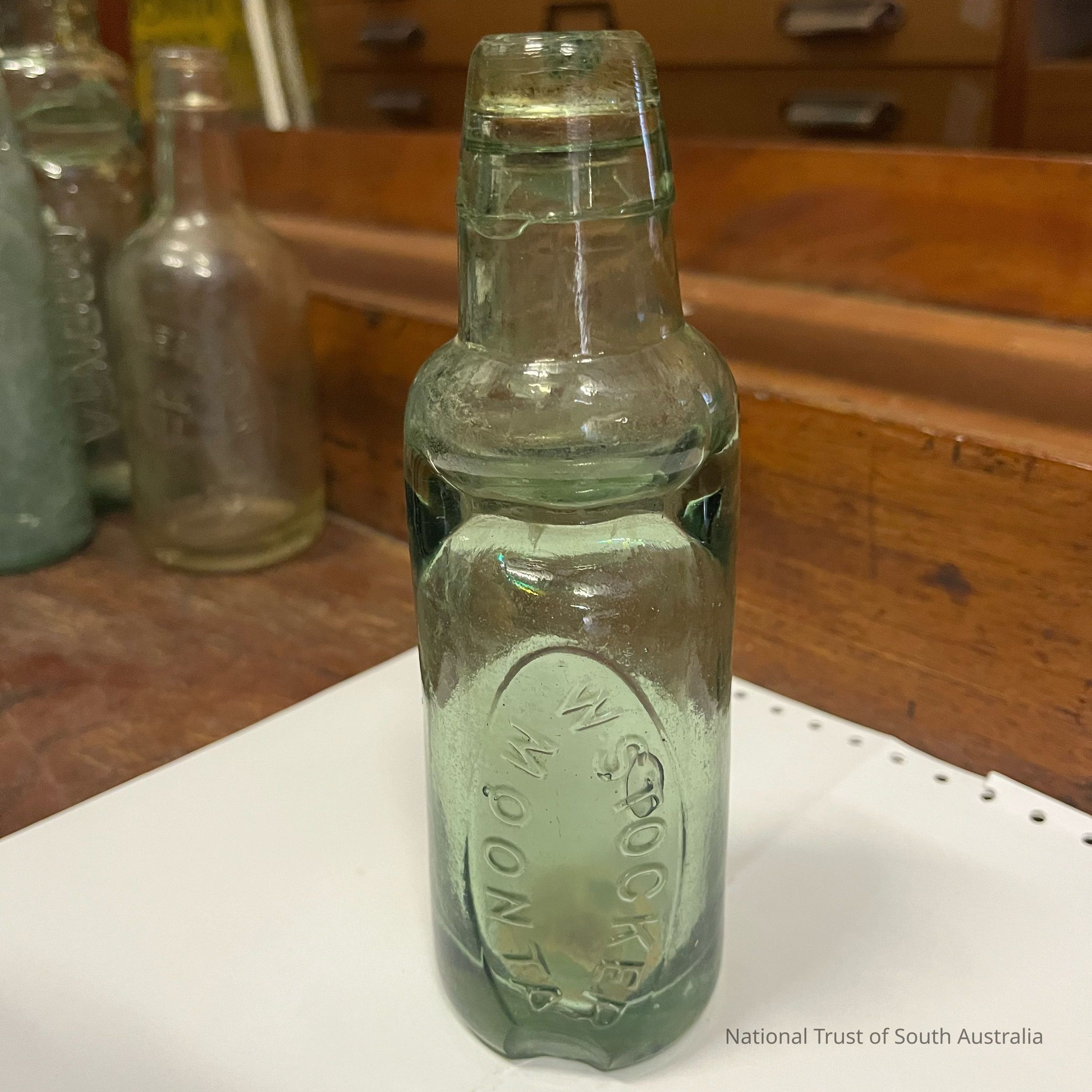 Green glass bottle embossed with “W Stocker Moonta” Located Box 9K