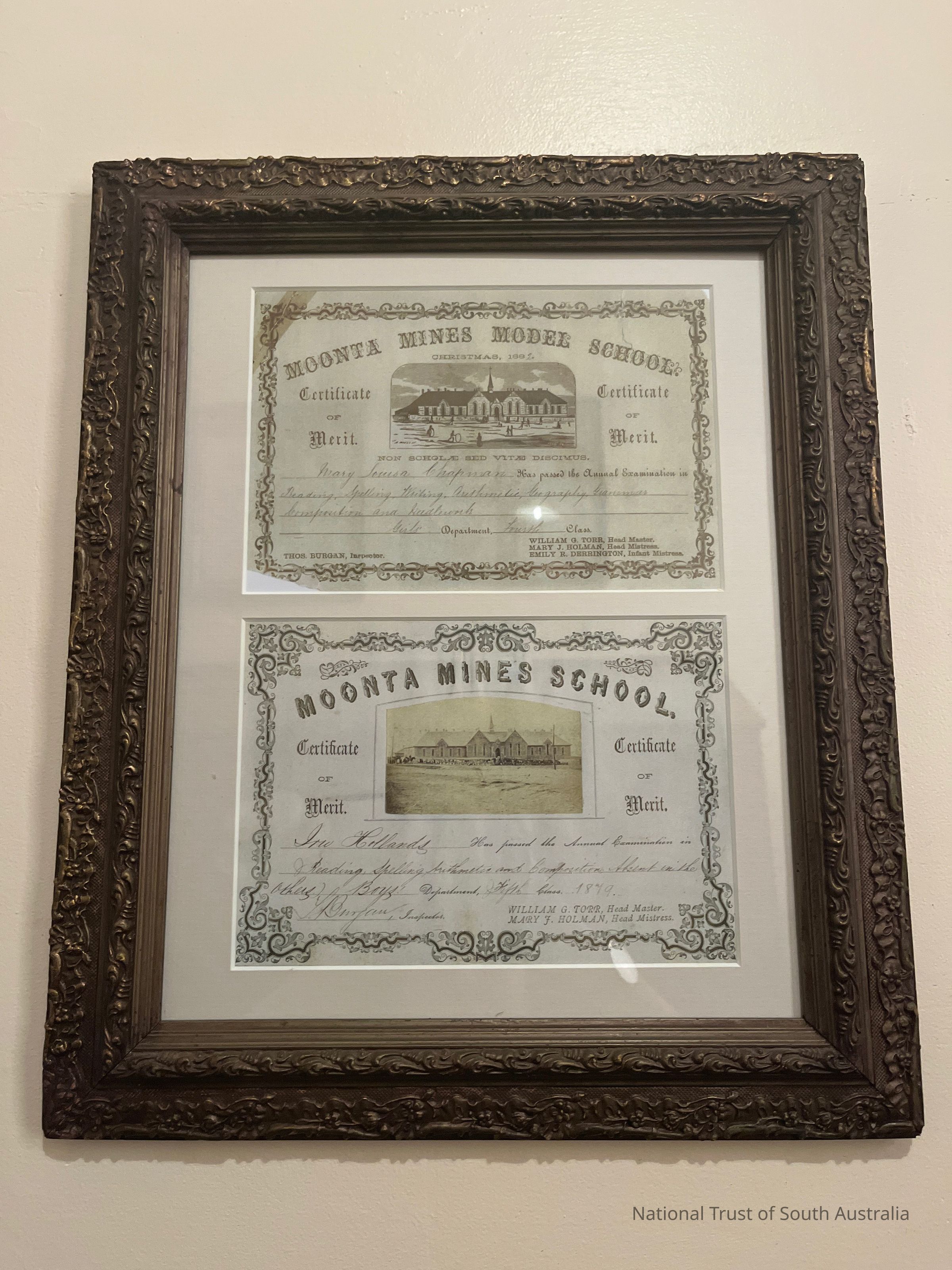 Contains two certificates of merit awarded at Moonta Mines School