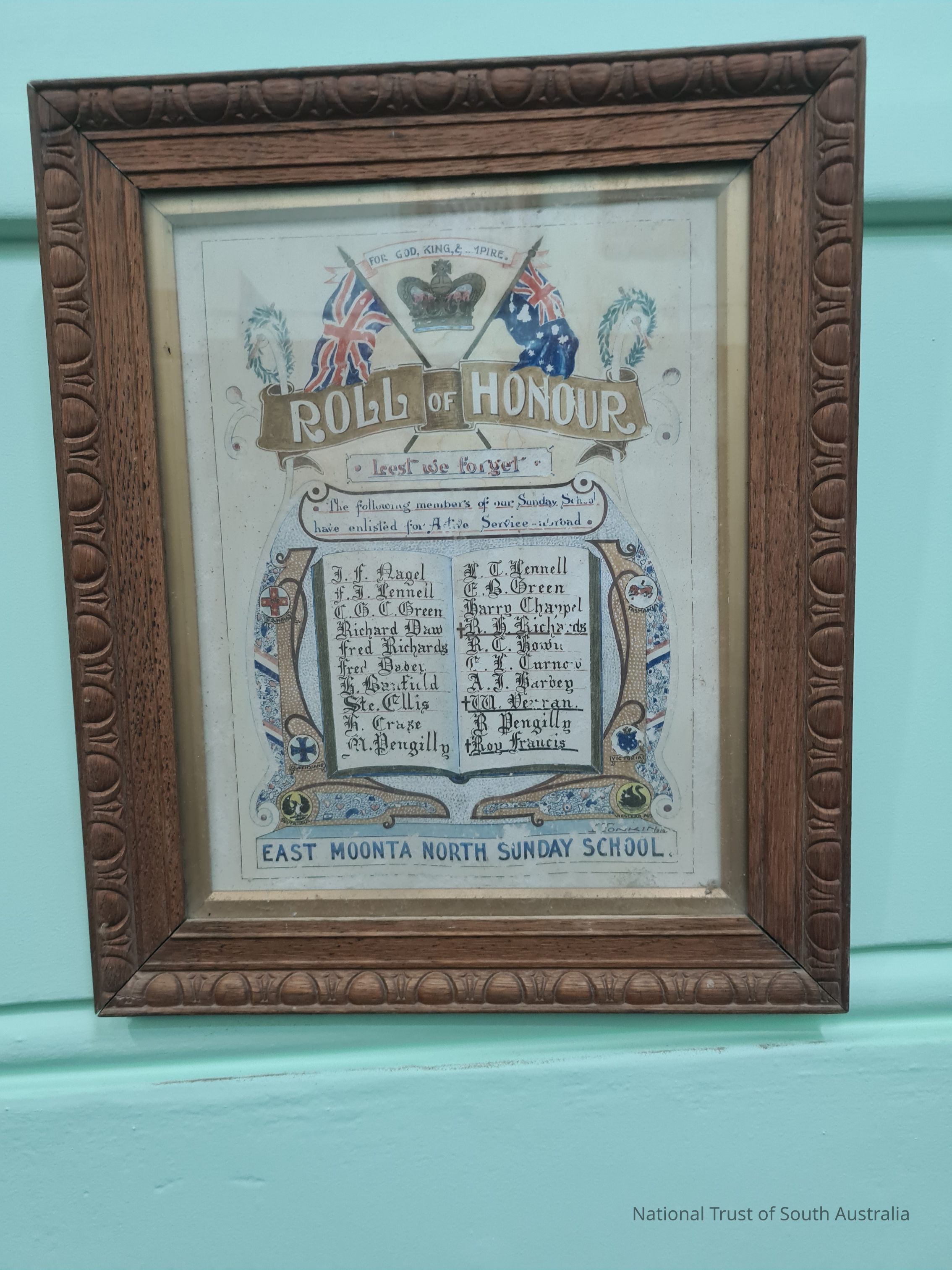 Roll of Honor East Moonta North Sunday School. Those who enlisted for active service.