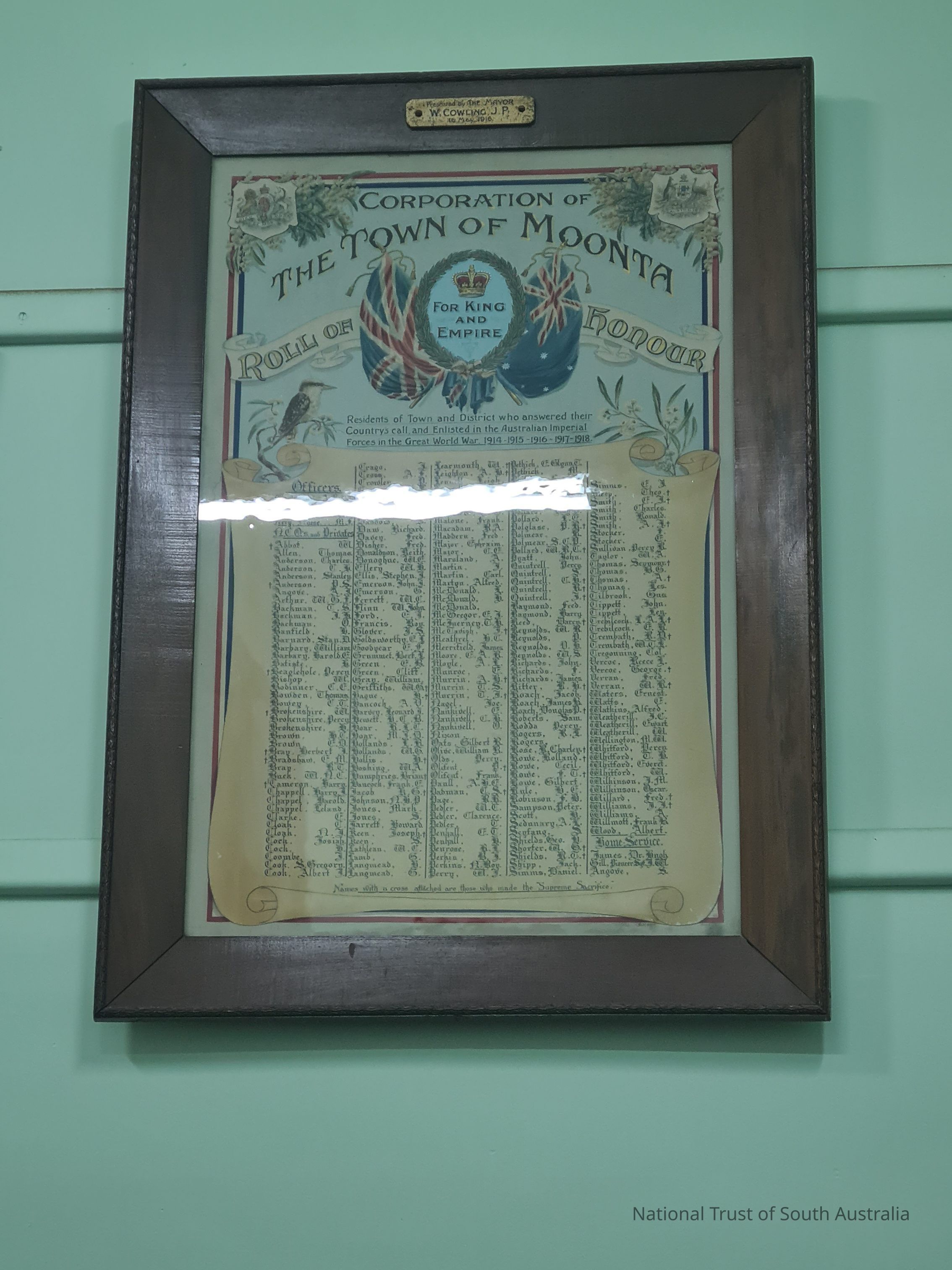 Corporation of The Town of Moonta Roll Of Honor. Presented by the Mayor W. Cowling JP. 15 May 1916.