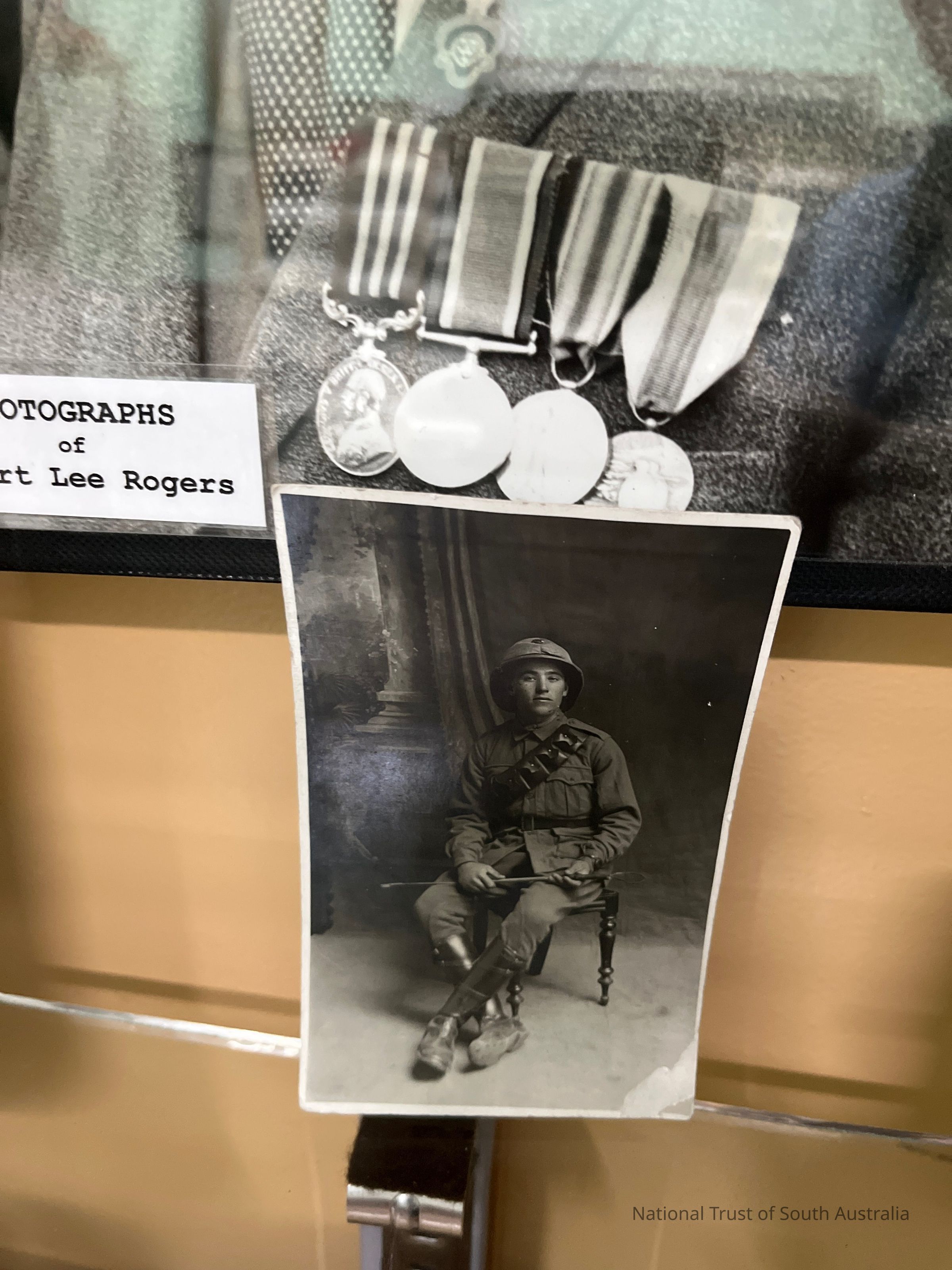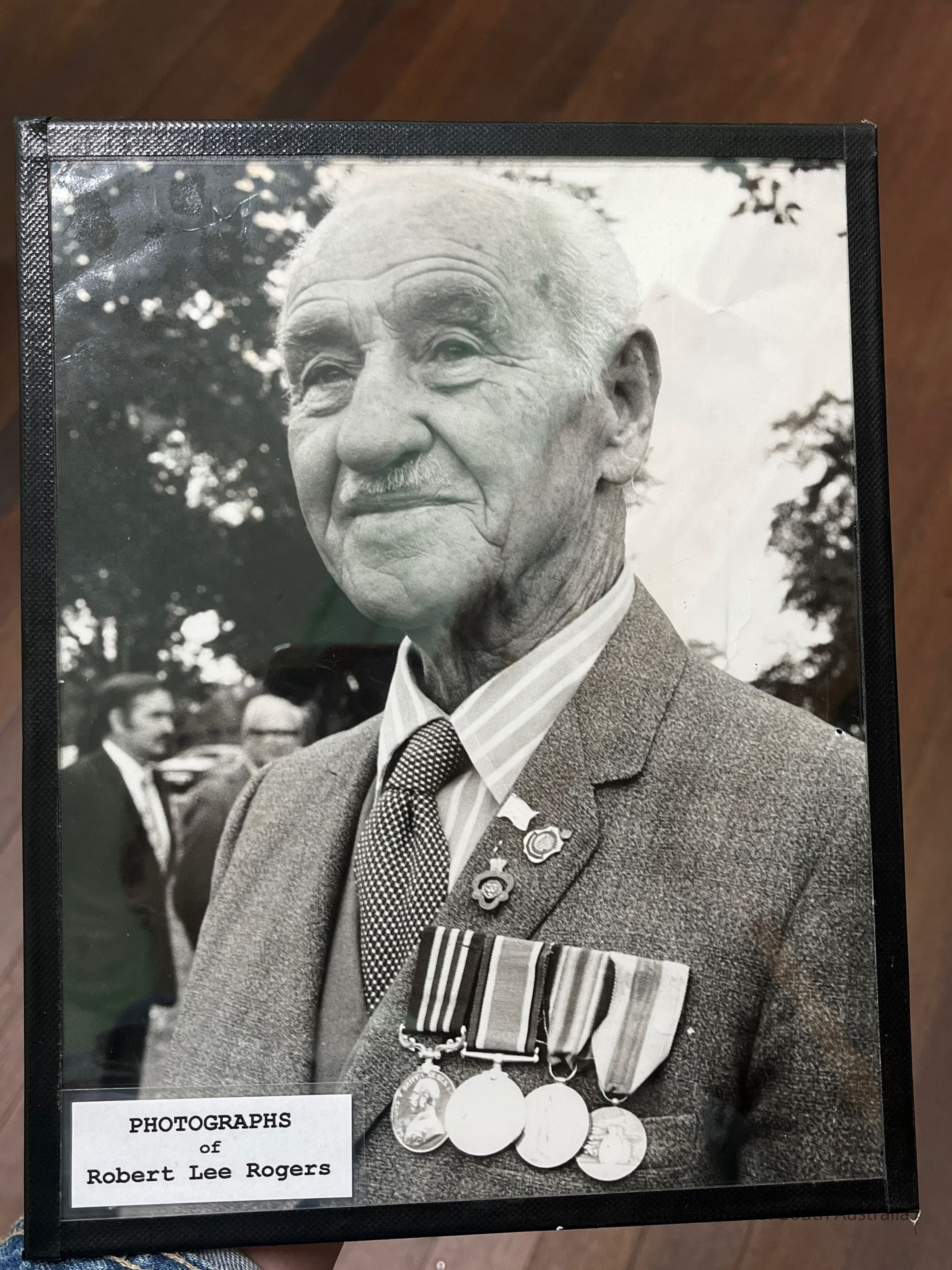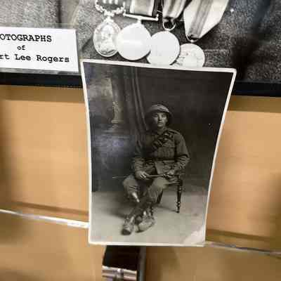 Framed photograph of Robert Lee Rogers, accompanied by unframed image of him in his youth during military service
