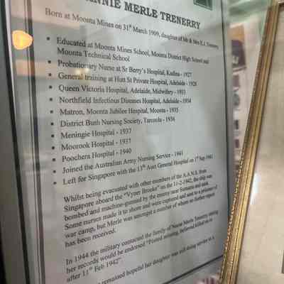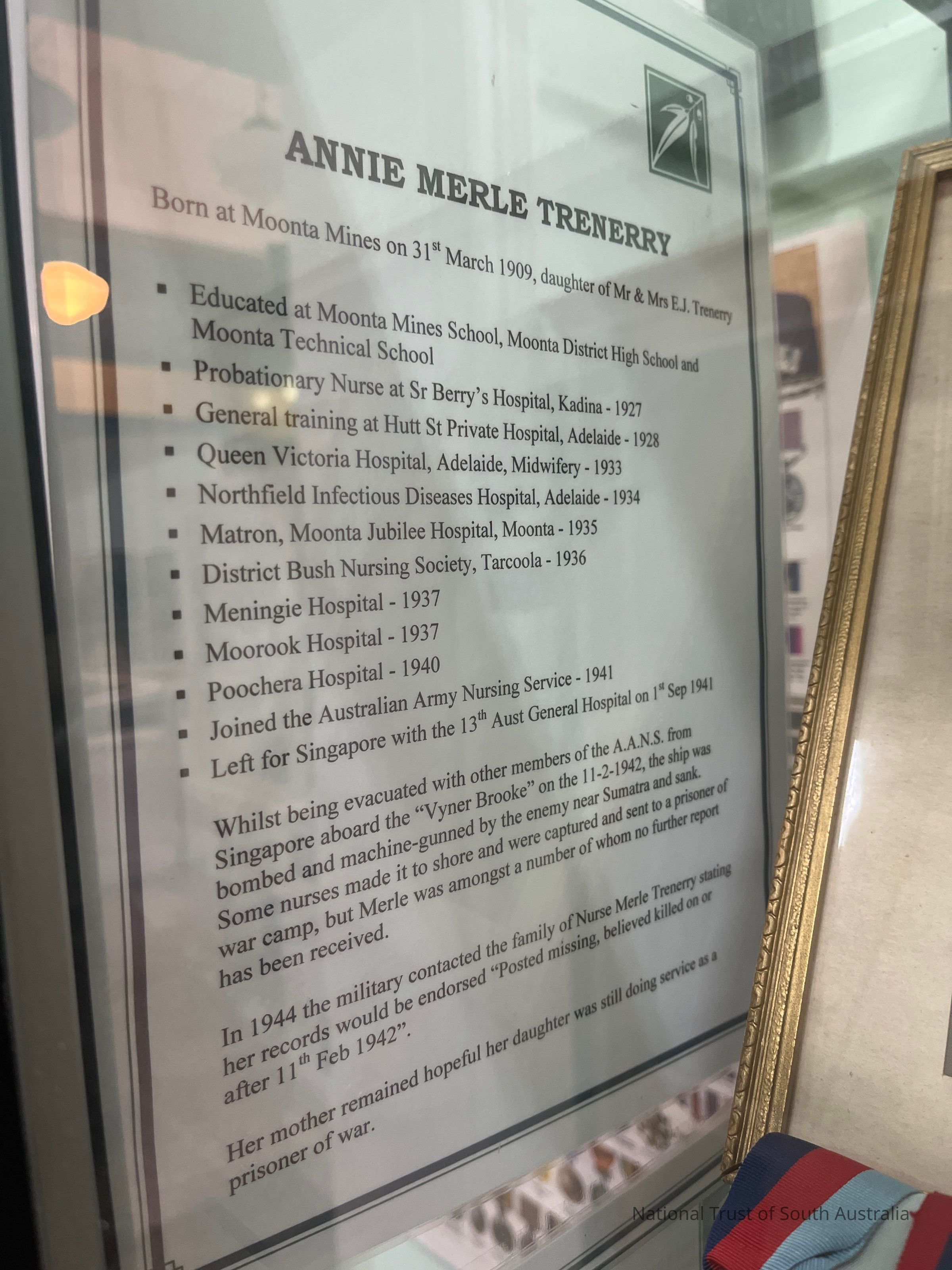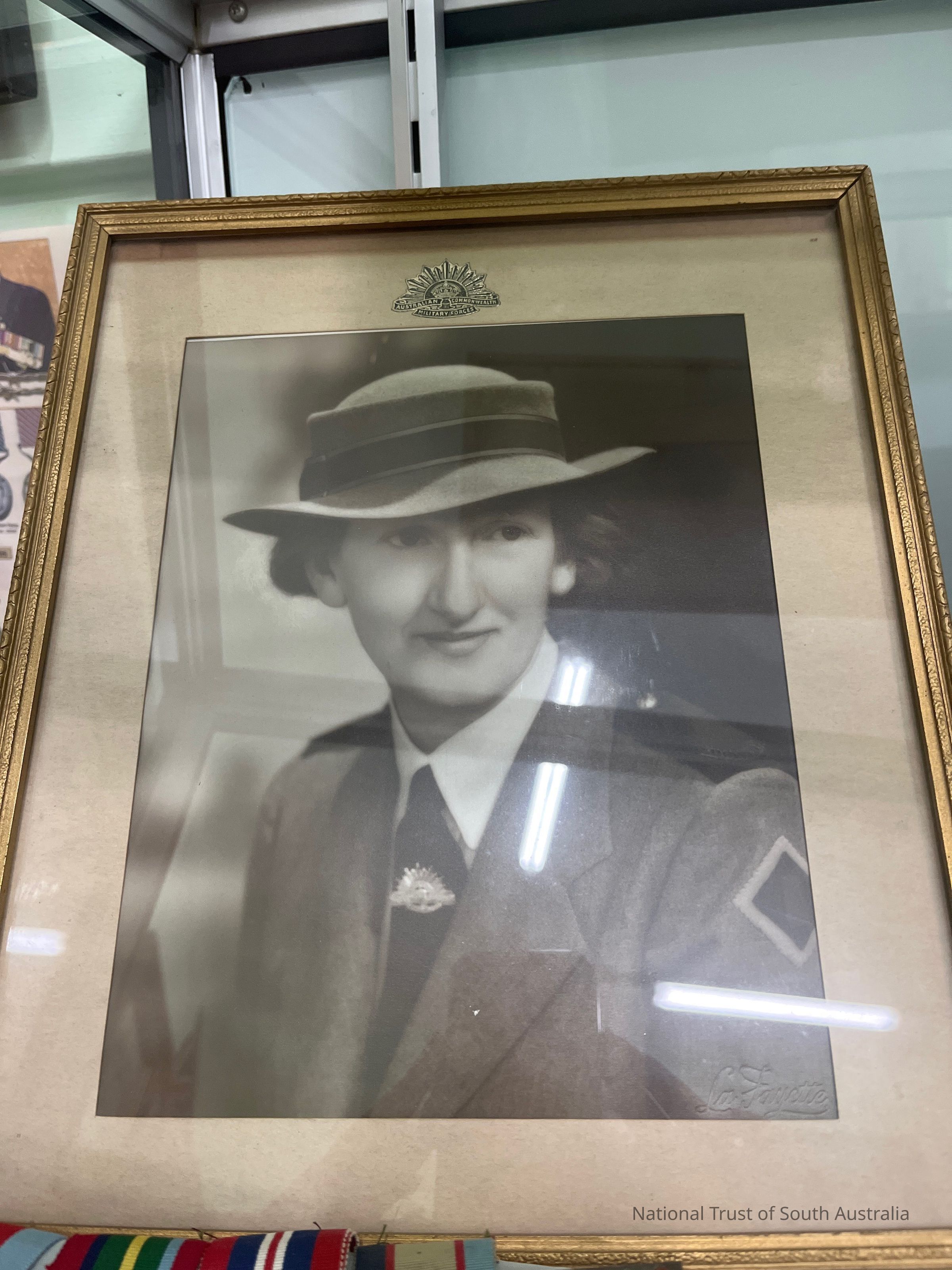 Framed photograph of Nurse Annie Merle Trenerry. Above Annie sits an Australian Commonwealth Military Forces insignia.