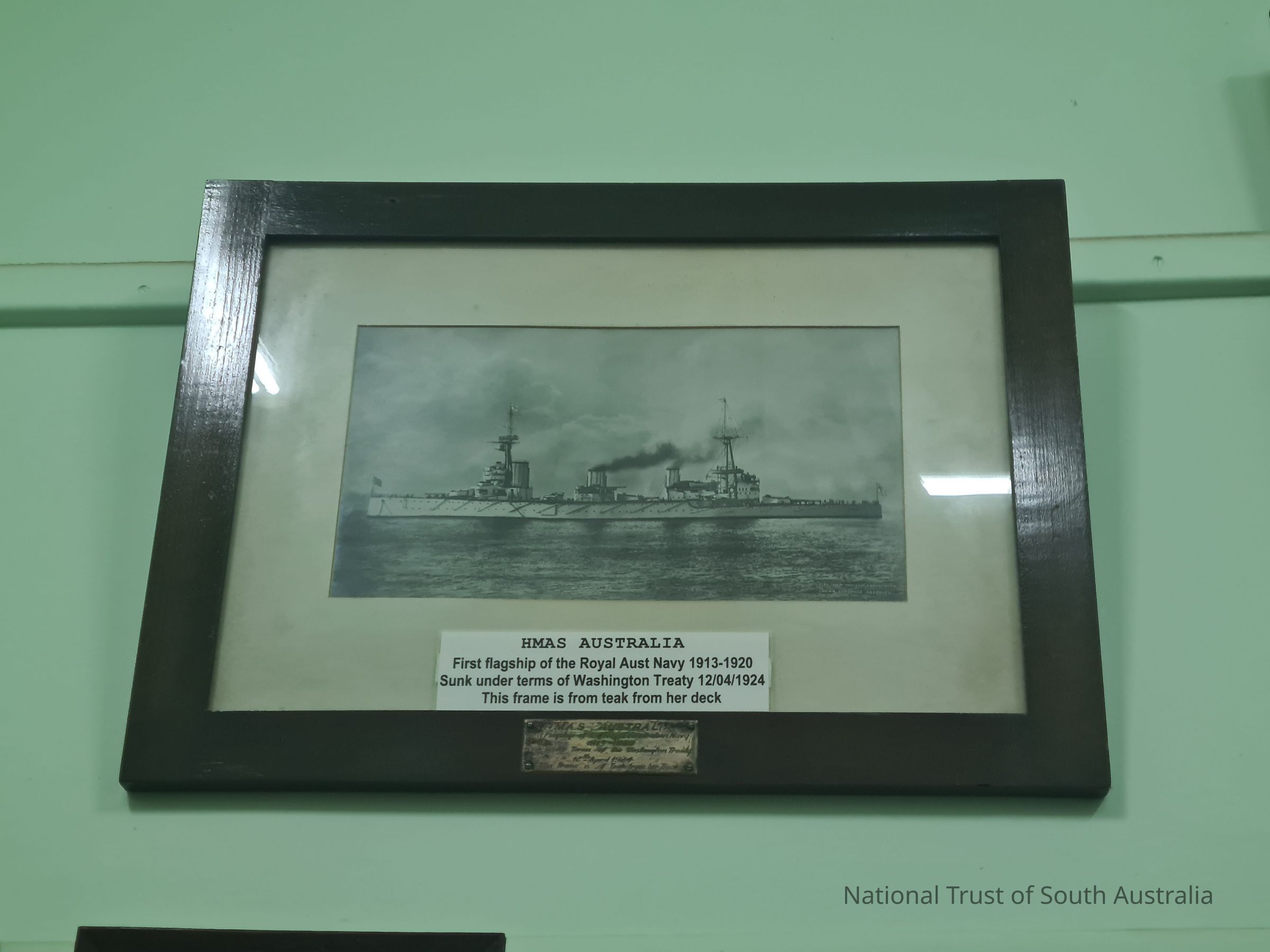 HMAS Australia, first flagship of the Royal Australian Navy 1913 - 1920. Sunk under the terms of the Washington Naval Treaty 12 April 1924. This frame is from the teak of her deck.Collection