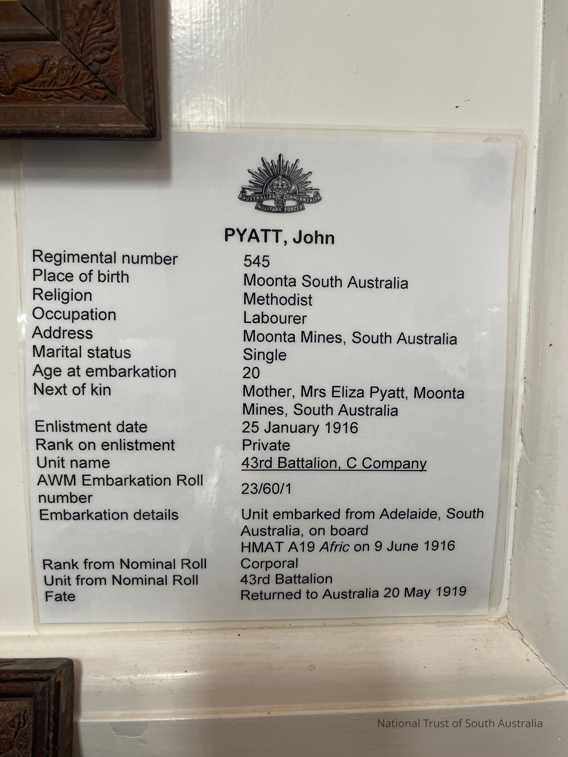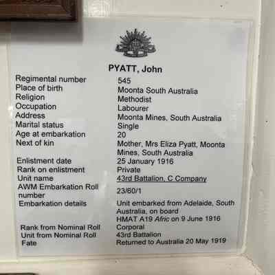Framed photograph of Private John Pyatt, 43rd Battalion, C Company