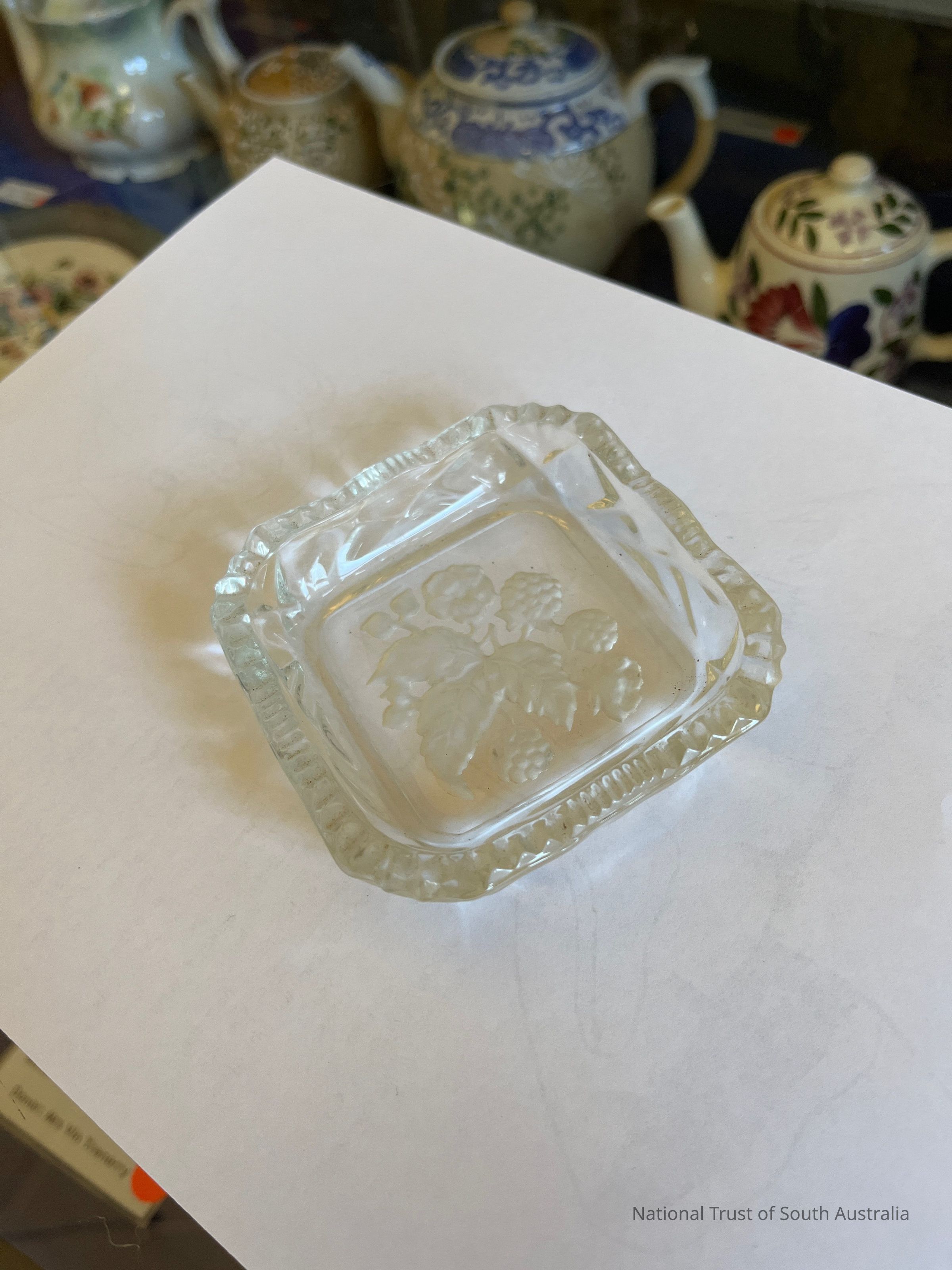 Small glass dish with floral (blackberry) motif