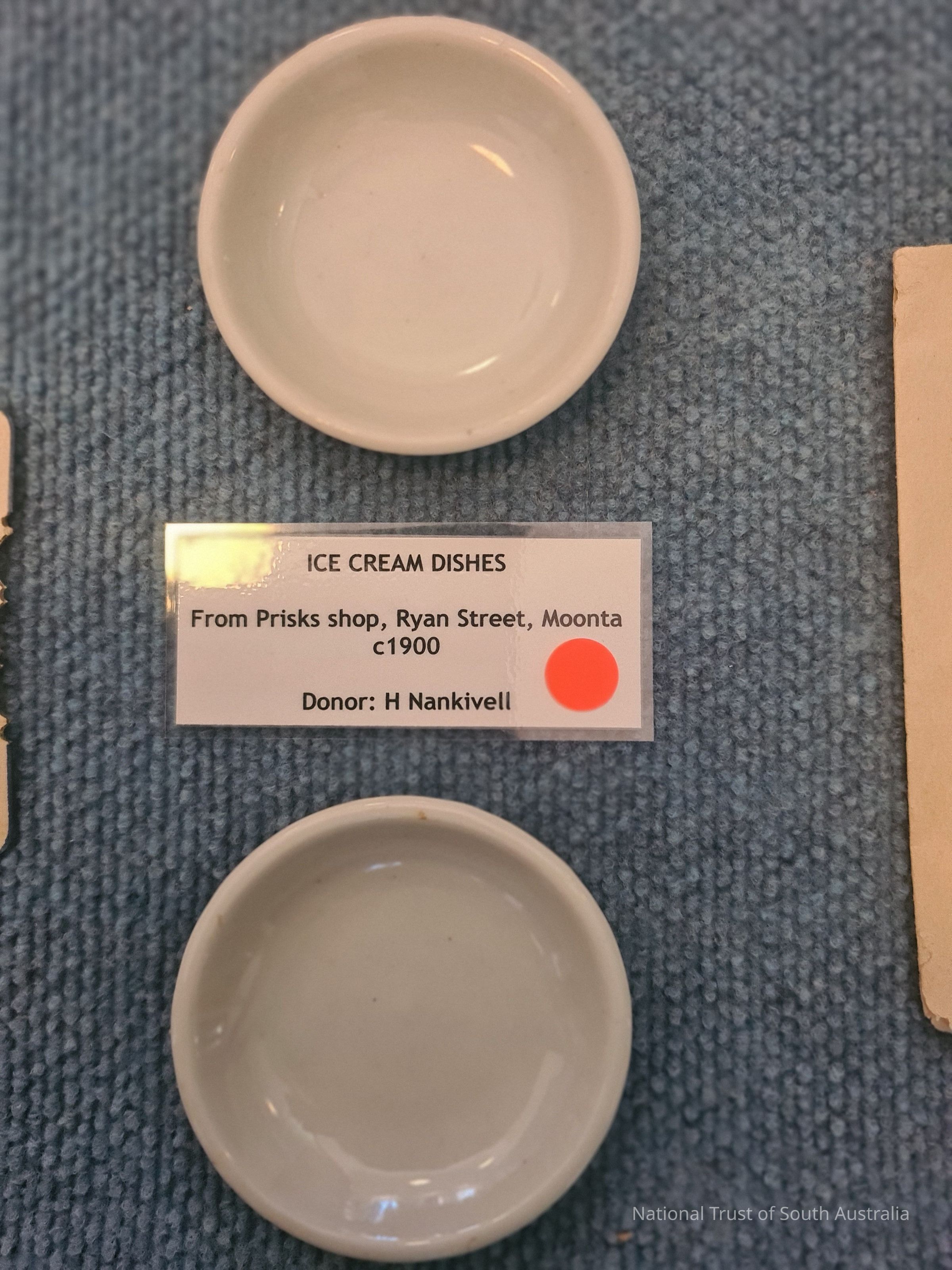 Icecream Dishes Prisks Shop, Ryan Street Moo ta circa 1900. Donated by H. Nankivell