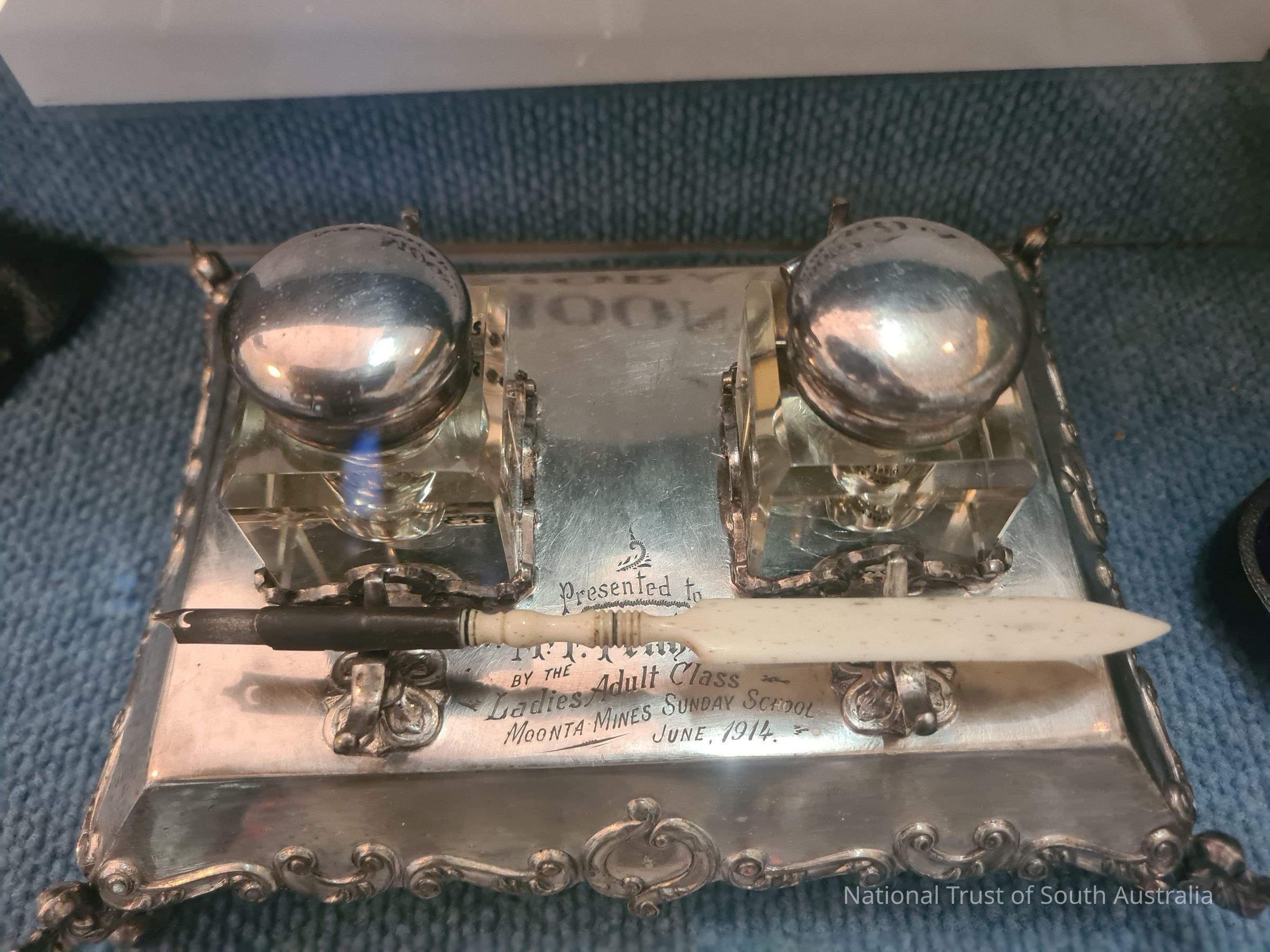 Silver Ink Stand presented toMr F. Penhall teacher at Moonta Mines Methodist Sunday school 1914