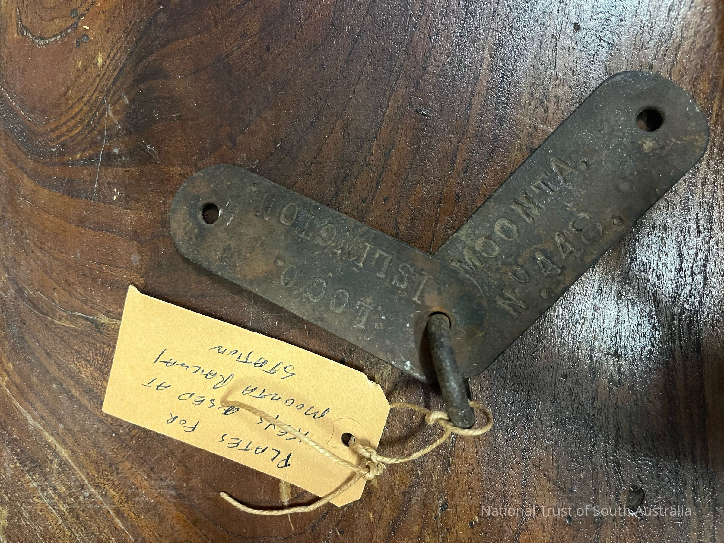 Pair of key plates used at Moonta Railway Station. Plate 1: LOCO ISLINGTON Plate 2: MOONTA NO. 448 Located Box K4