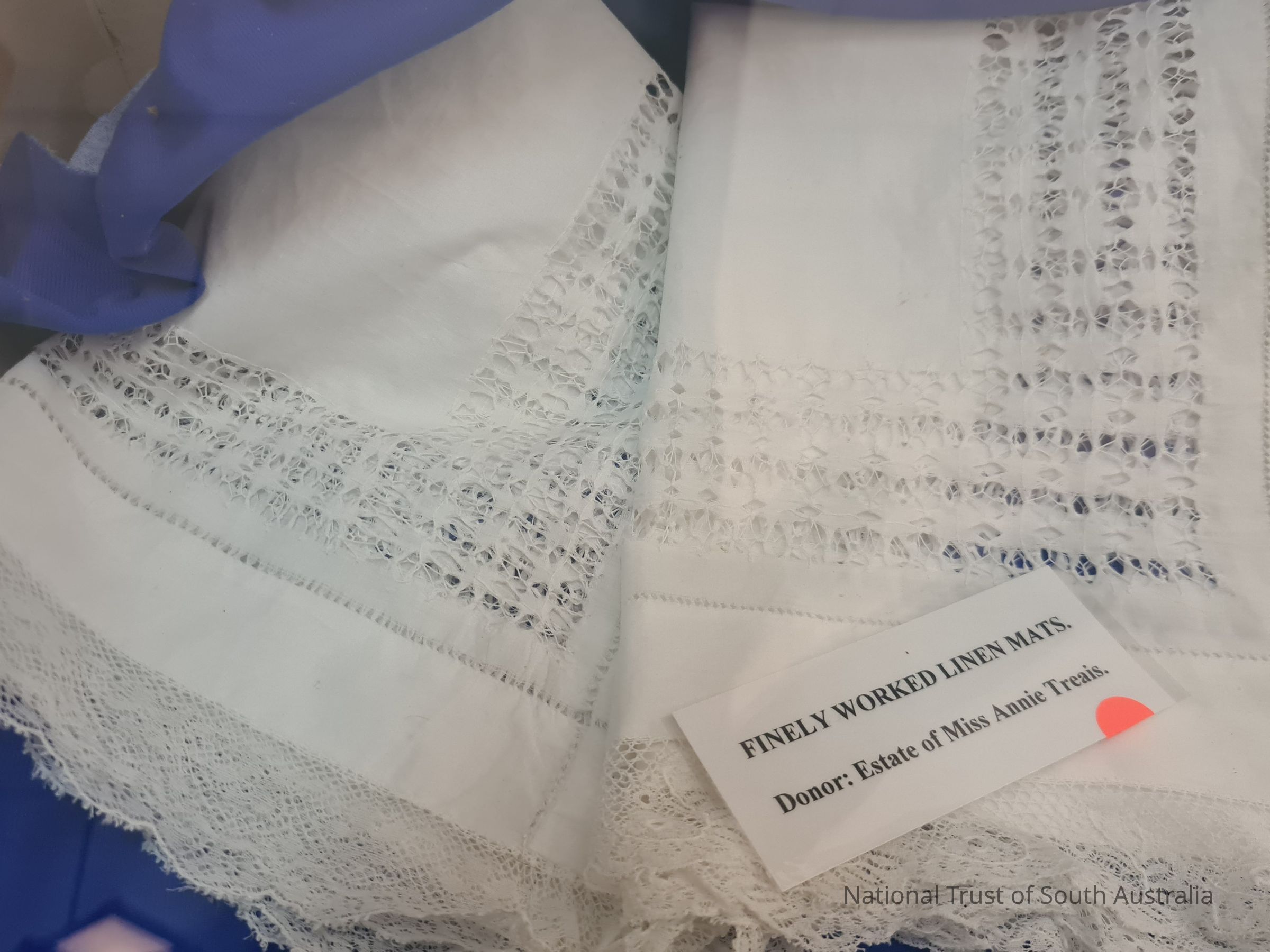 Finely worked lace. Donated by estate of Miss Annie Treais