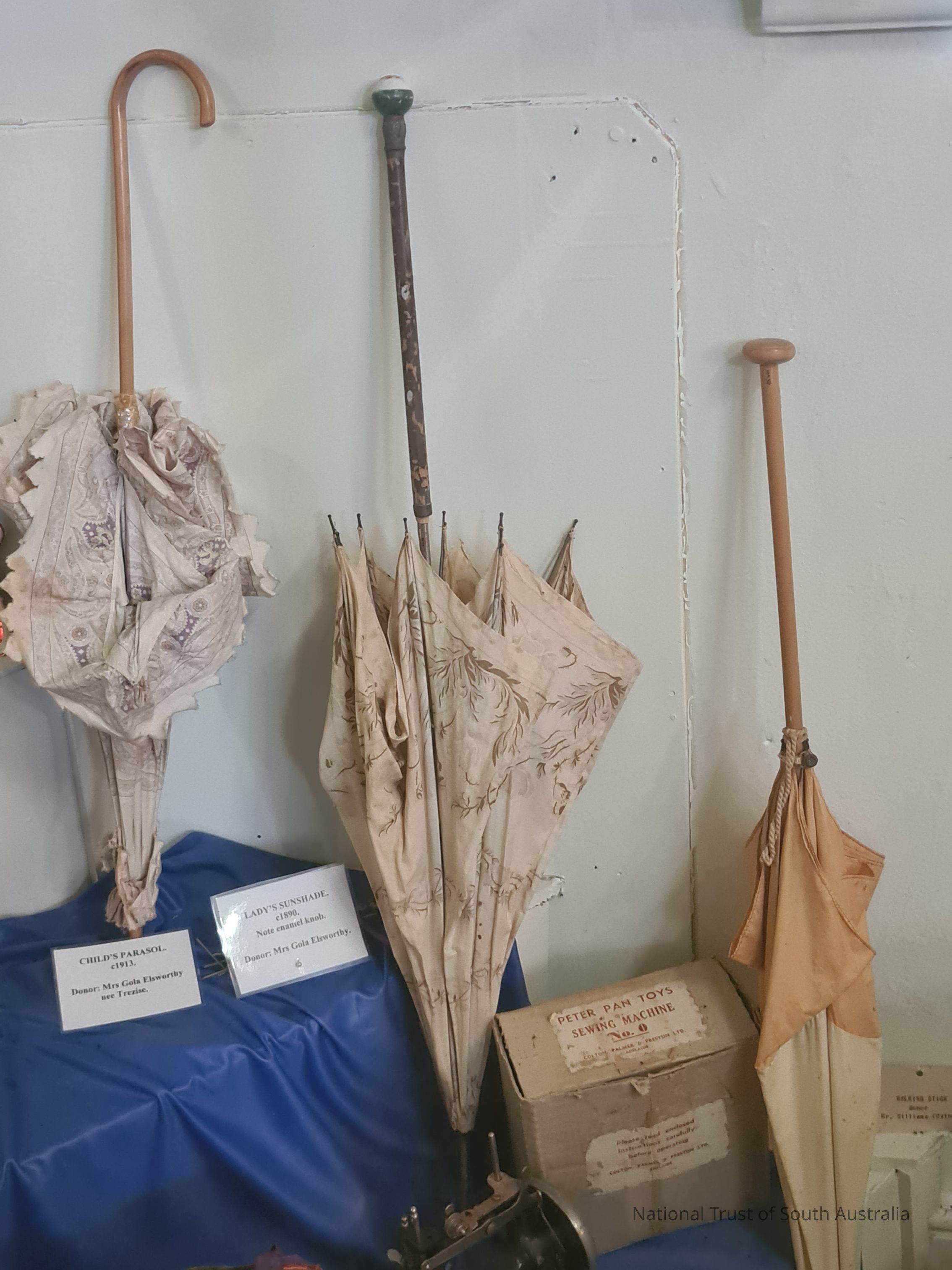 Ladies Sunshade circa 1890. Note enamel knob. Donated by Mrs Gola Elsworthy nee Trezise.