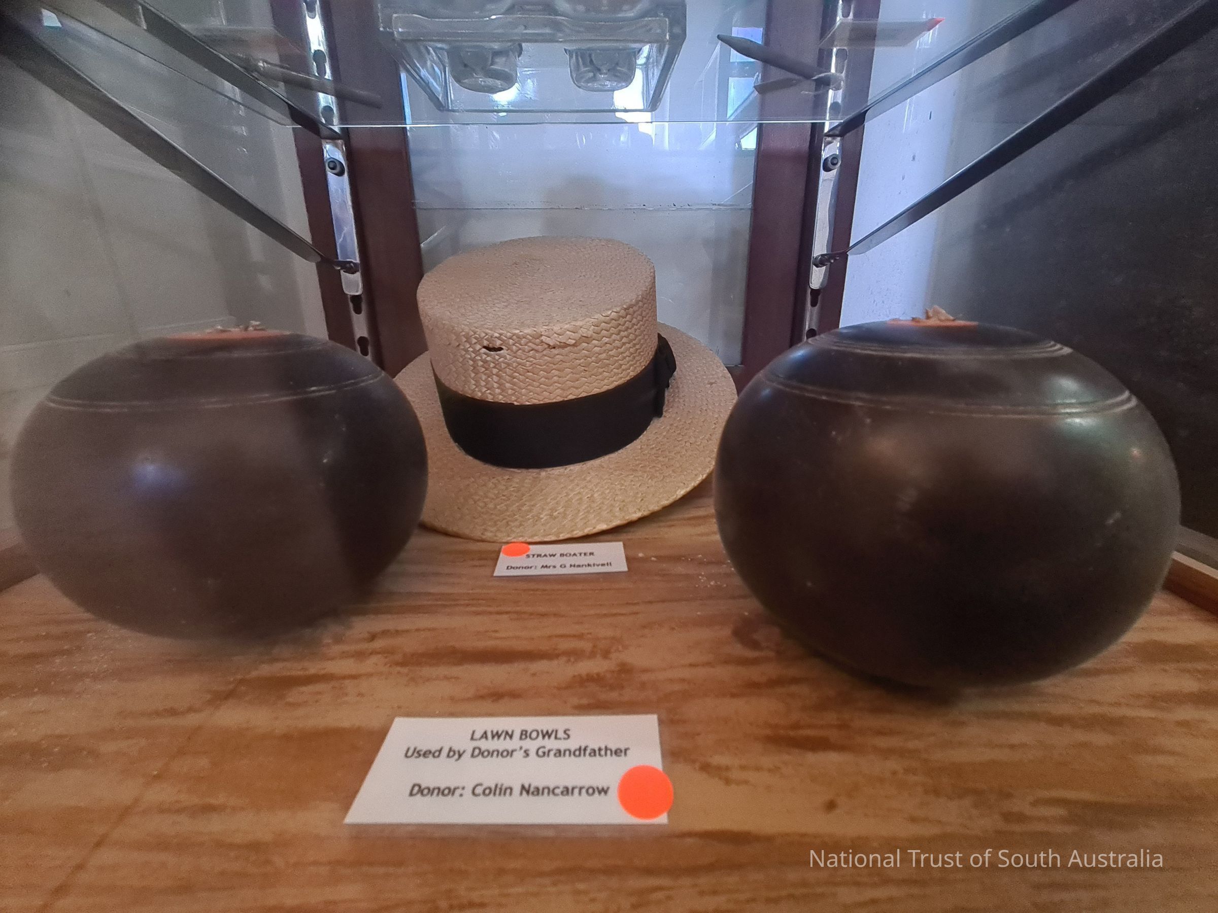 Lawn bowls used by donors grandfather. Donated by Colin Nancarrow.