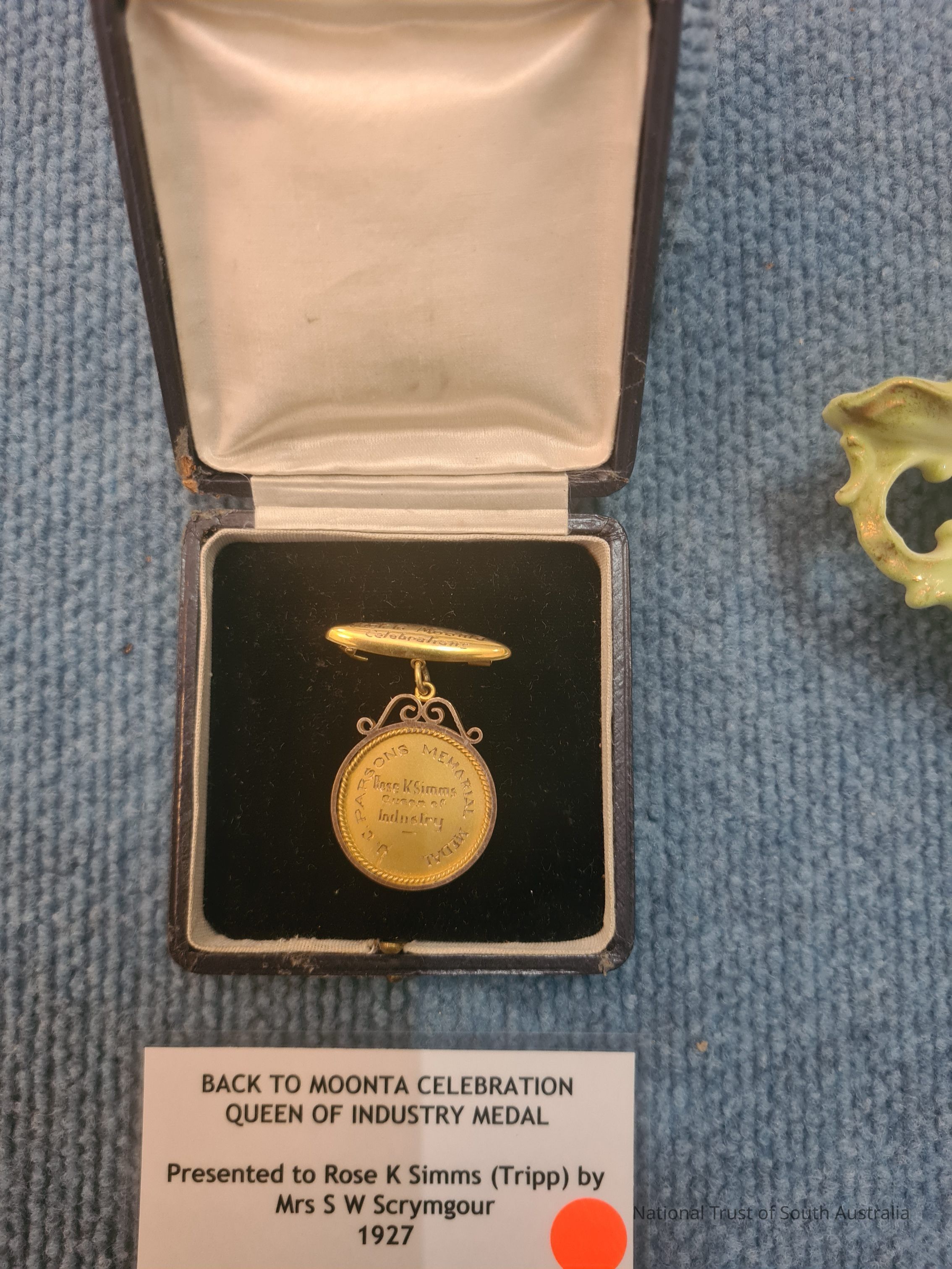 Back to Moonta Celebration Queen of Industry Medal. Presented to Rose K. Simms (Tripp) by Mrs S. W. Scrymgour 1927