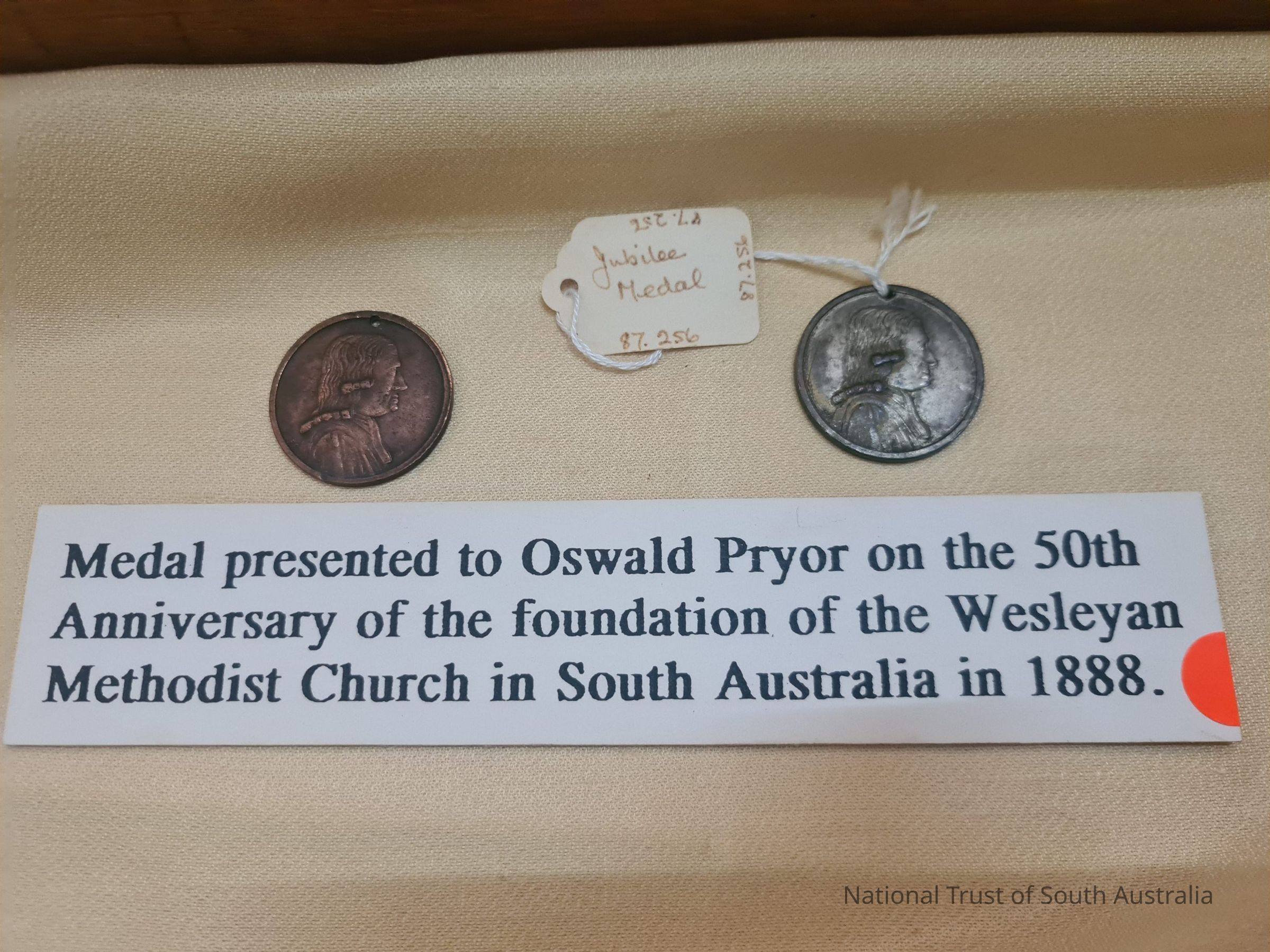 Medals presented to Oswald Pryor on the 50th Anniversary of the foundation of the Wesleyan Methodist Church in South Australia in 1888