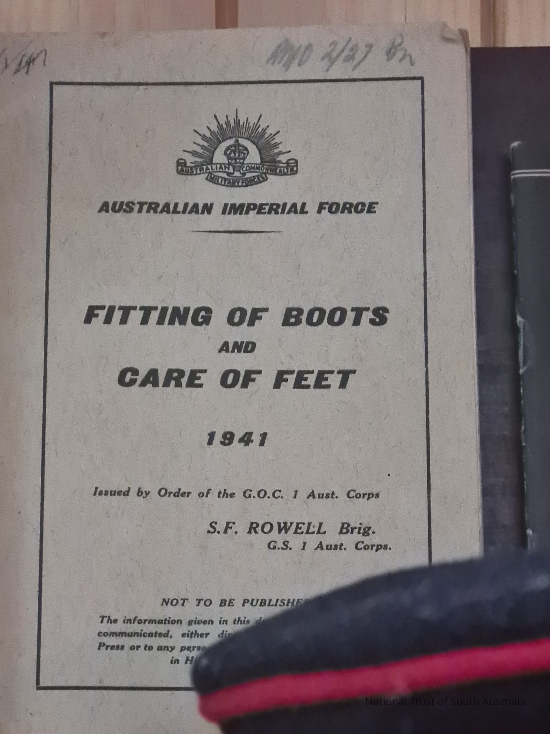 Australian Imperial Force. Fitting of Boots and Care of Feet 1941. Issued by order of the G.O.C. 1 Australian Corps. S. F. Rowell Brig.Collection