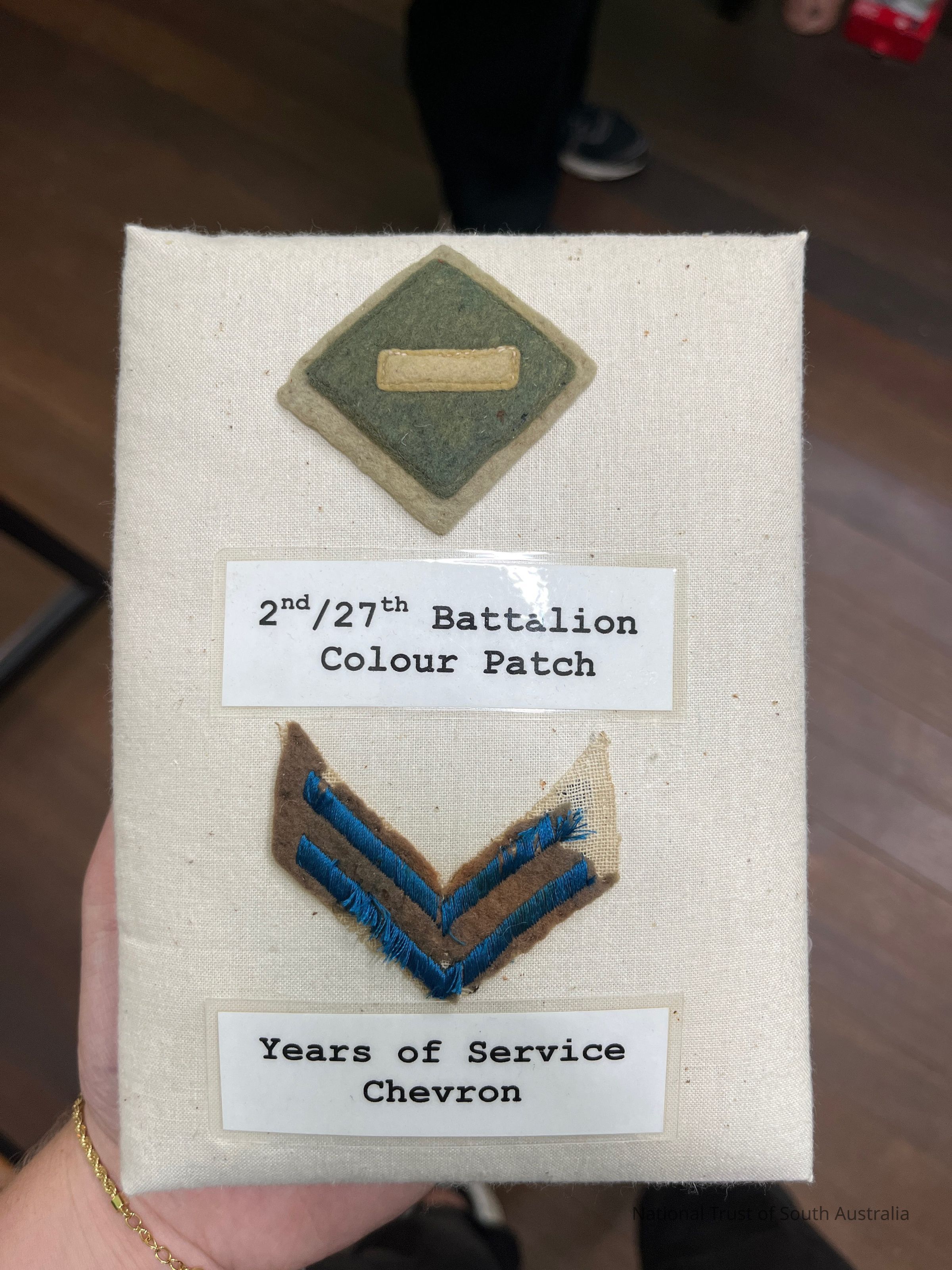 Top: 2nd/27th Battalion colour patch Bottom: Years of Service chevron