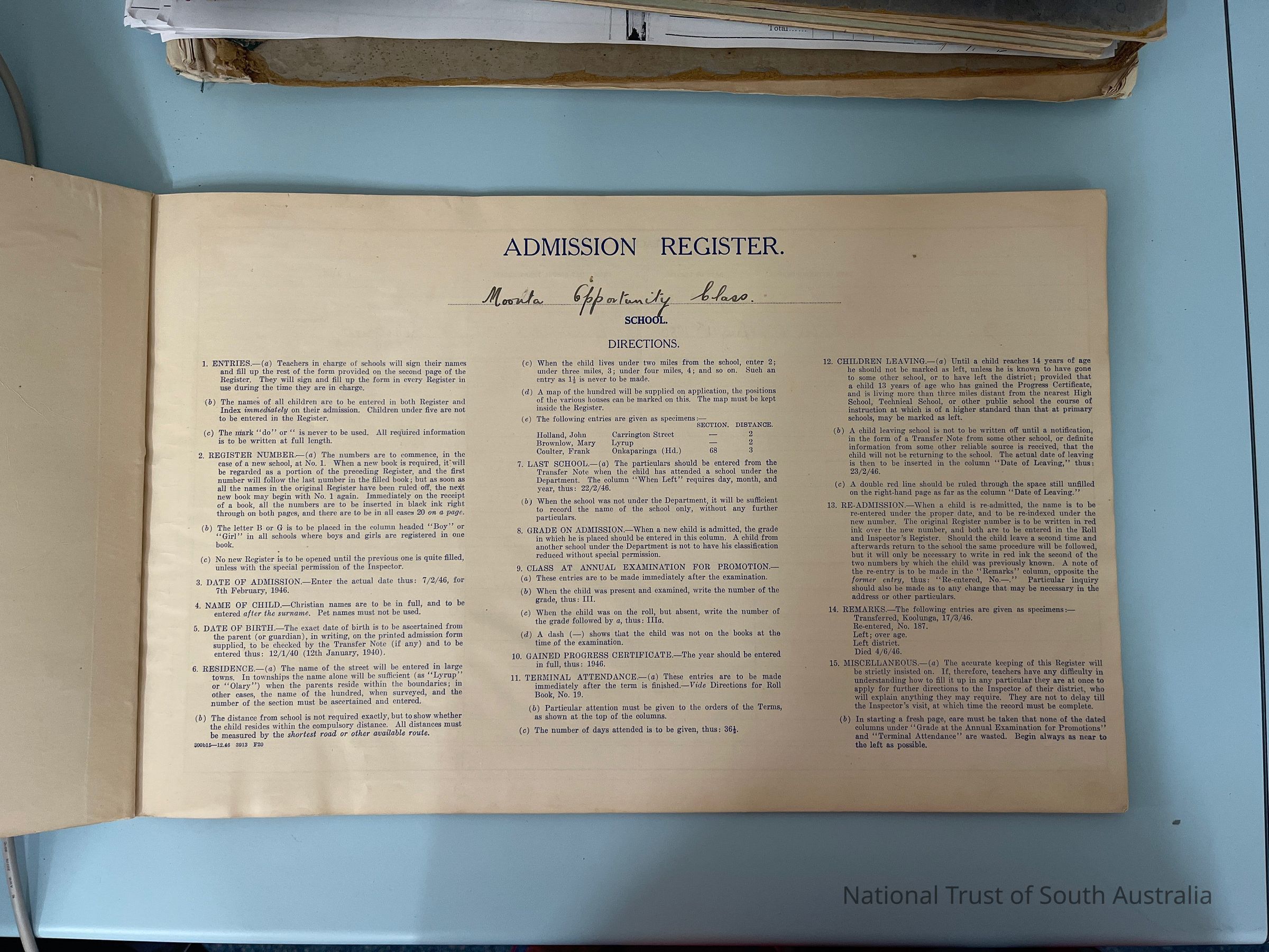 Moonta Opportunity Class Admission registerEntry/Object ID