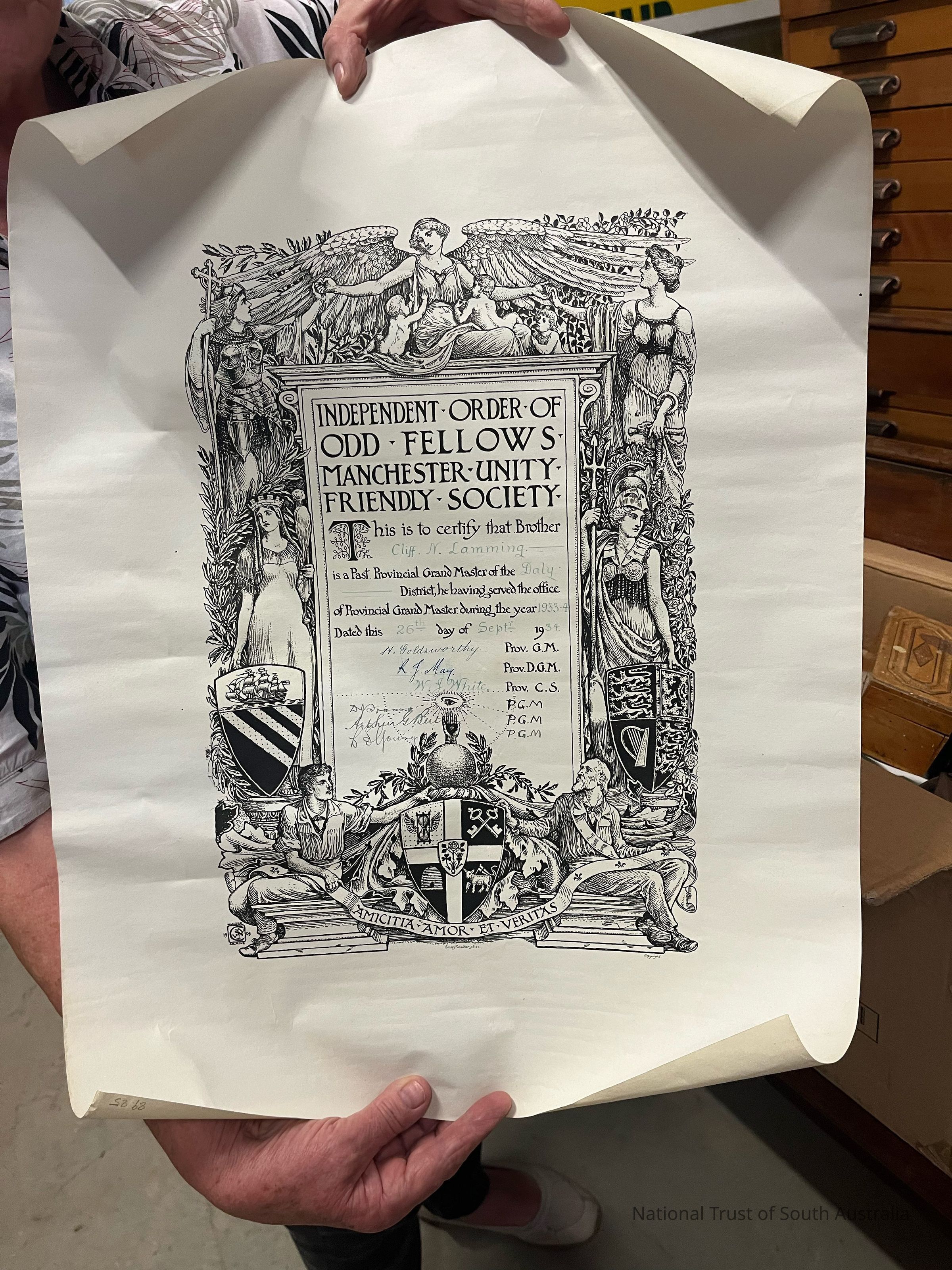 This is to certify that Brother Cliff N Lamming is a Past Provincial Grand Master of the Daly District, have having served the office of Provincial Grand Master during the year 1933-44.