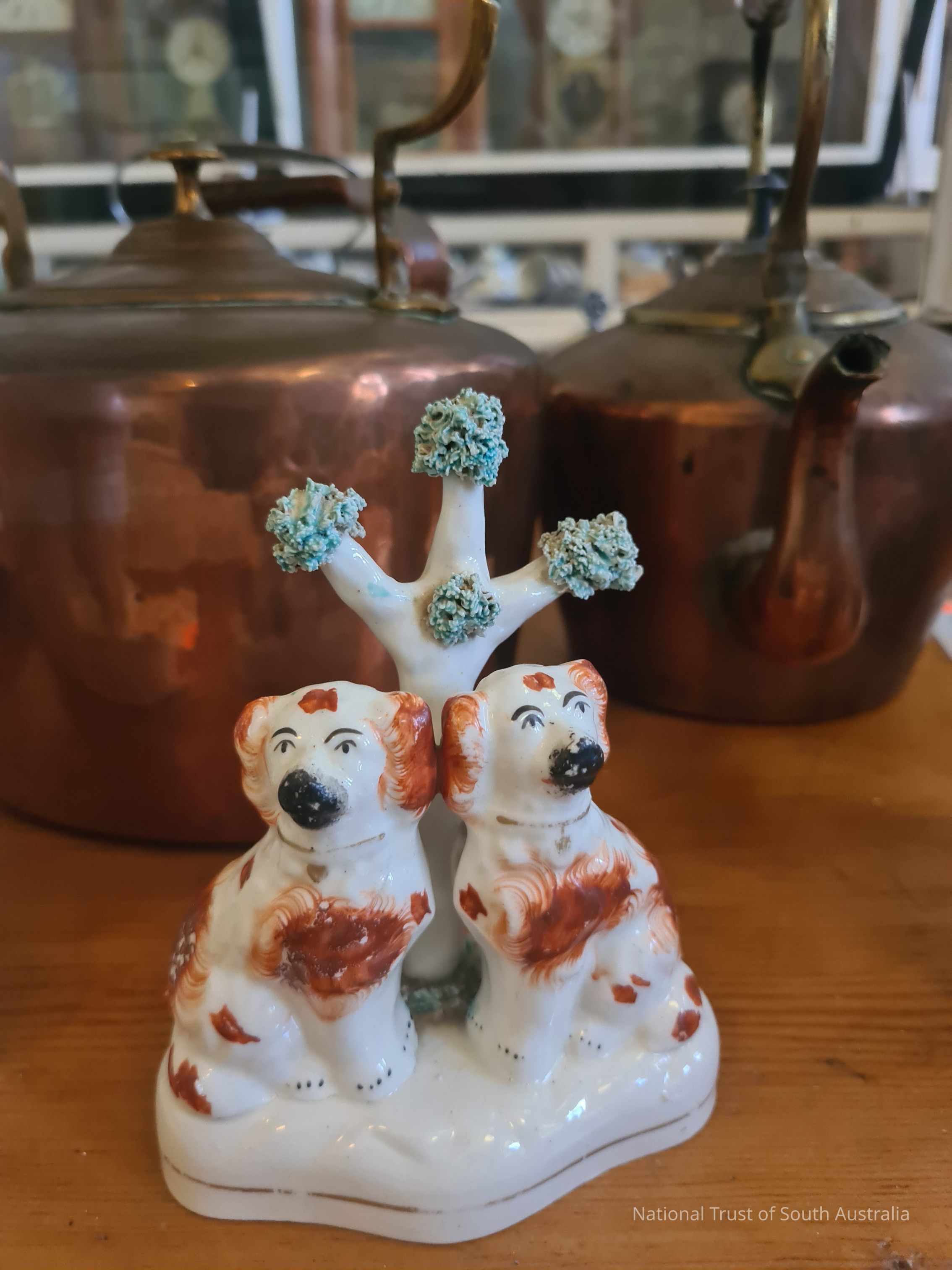 Ornament. Two dogs under a tree. Donated by Mrs Amy Robinson