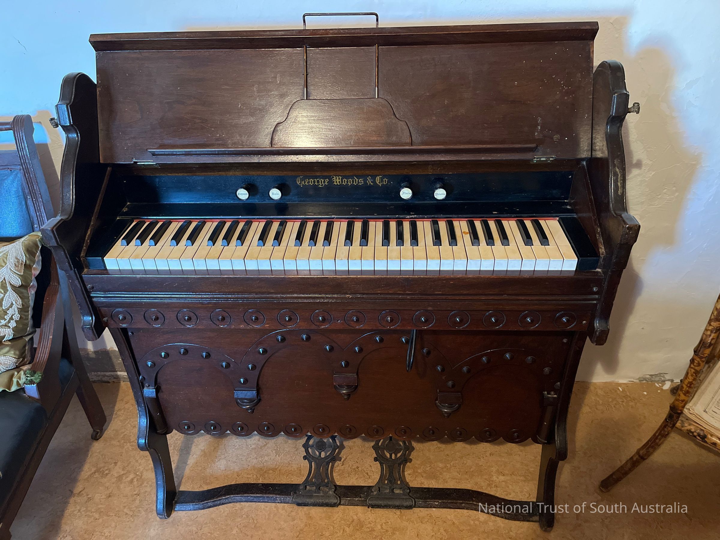 Instrument manufactured by George Woods & Co, Boston. Text on stops: Diapason, Viola, Flute, Melodia