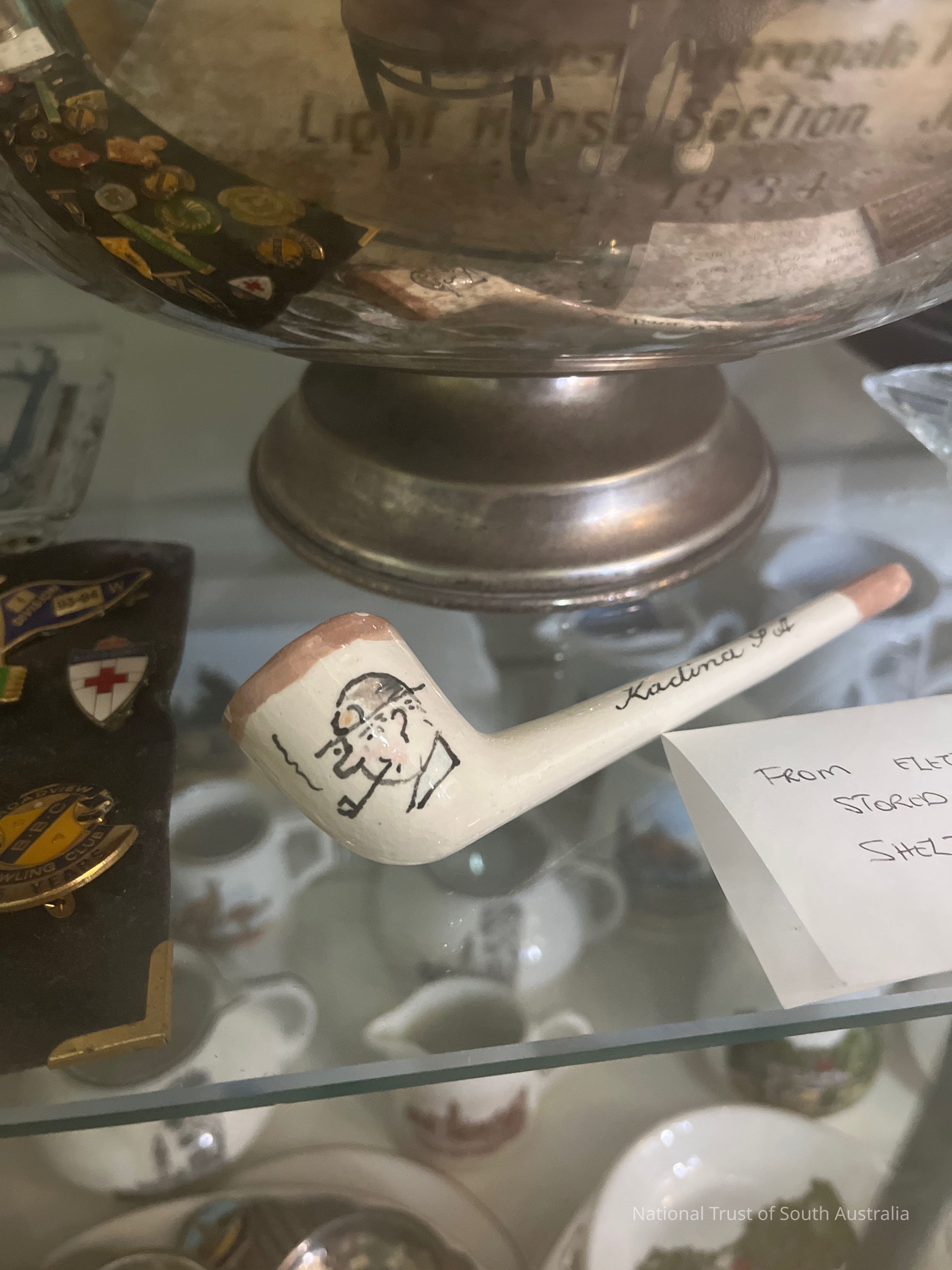 Ceramic pipe featuring illustration of a miner smoking and text: Kadina SA