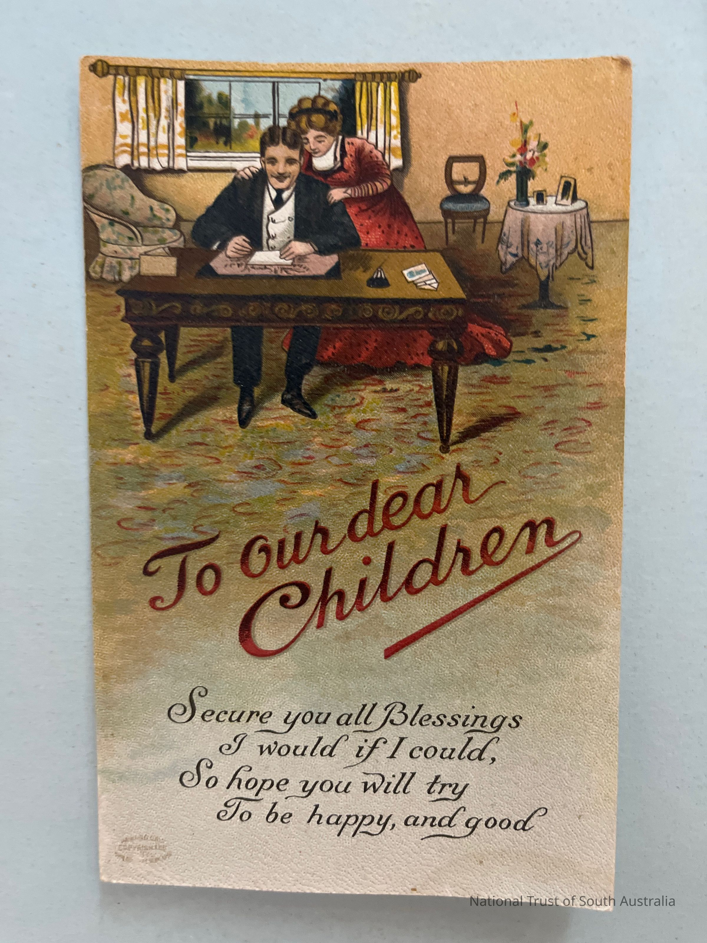 Text: To our dear Children, Secure you all Blessings I would if I could, So hope you will try To be happy, and good