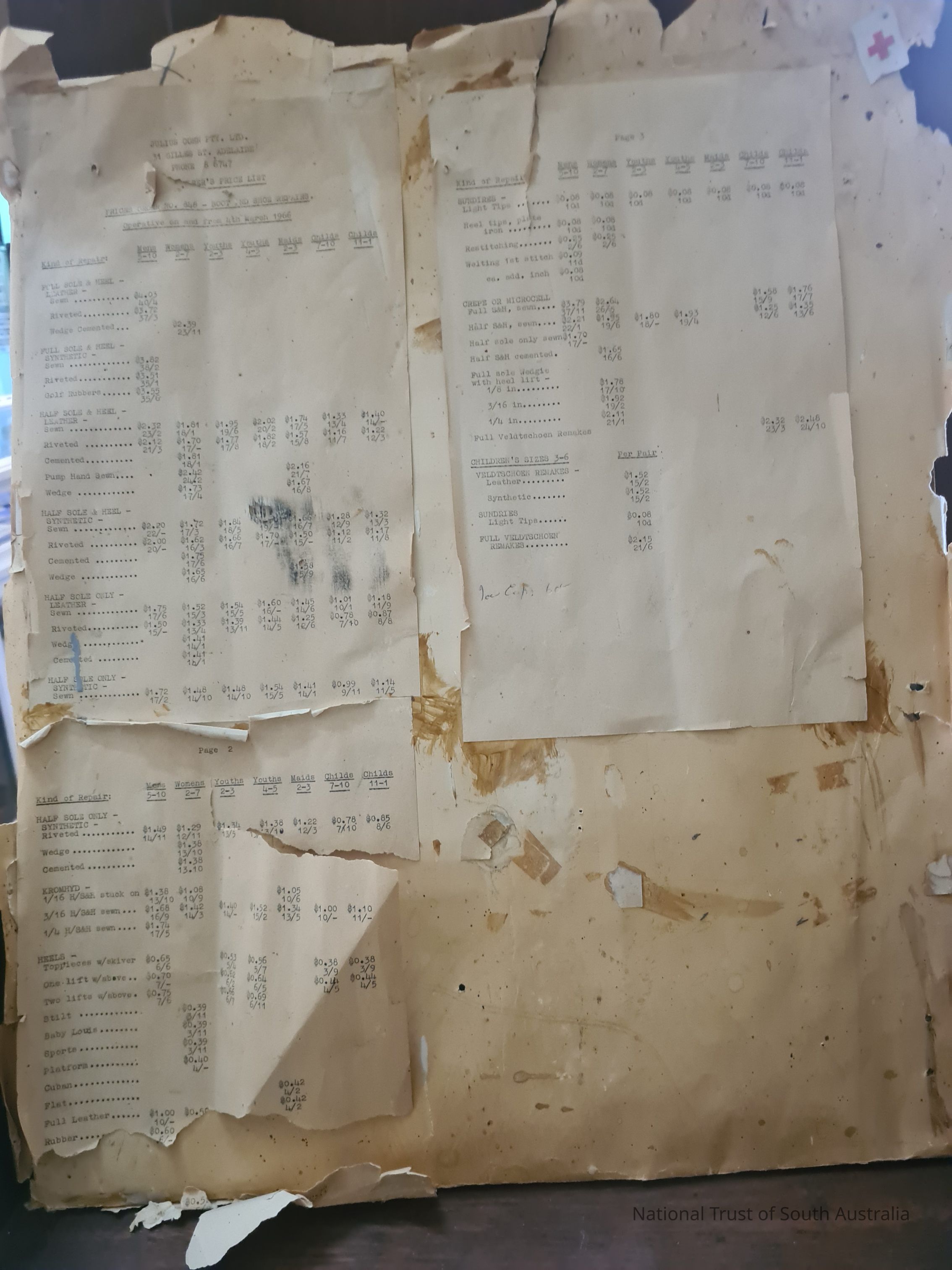 Price sheets of Juluis Cohn & Co. Shoe store Adelaide