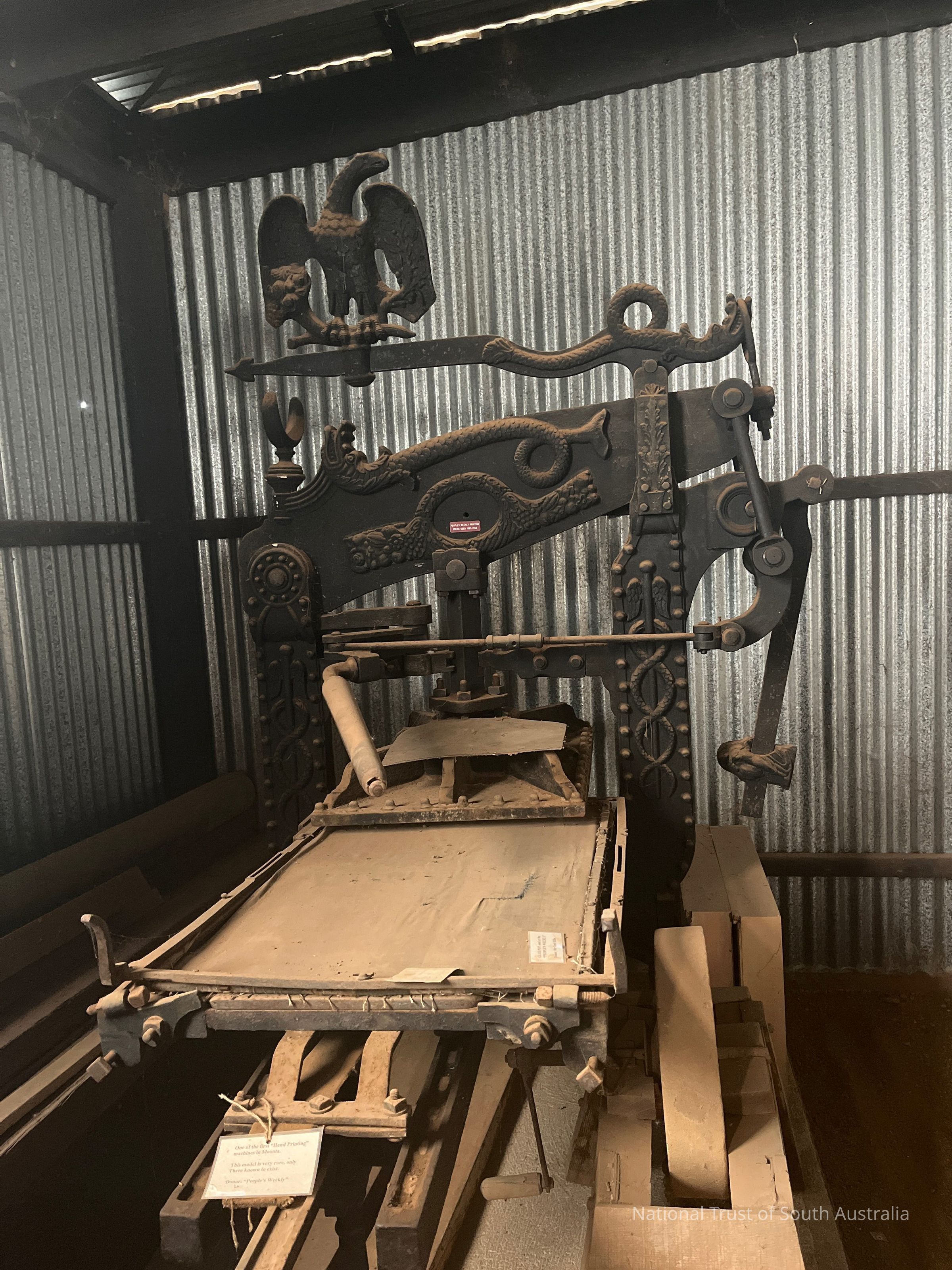 Large printing press with ornate, Eagle headdress.