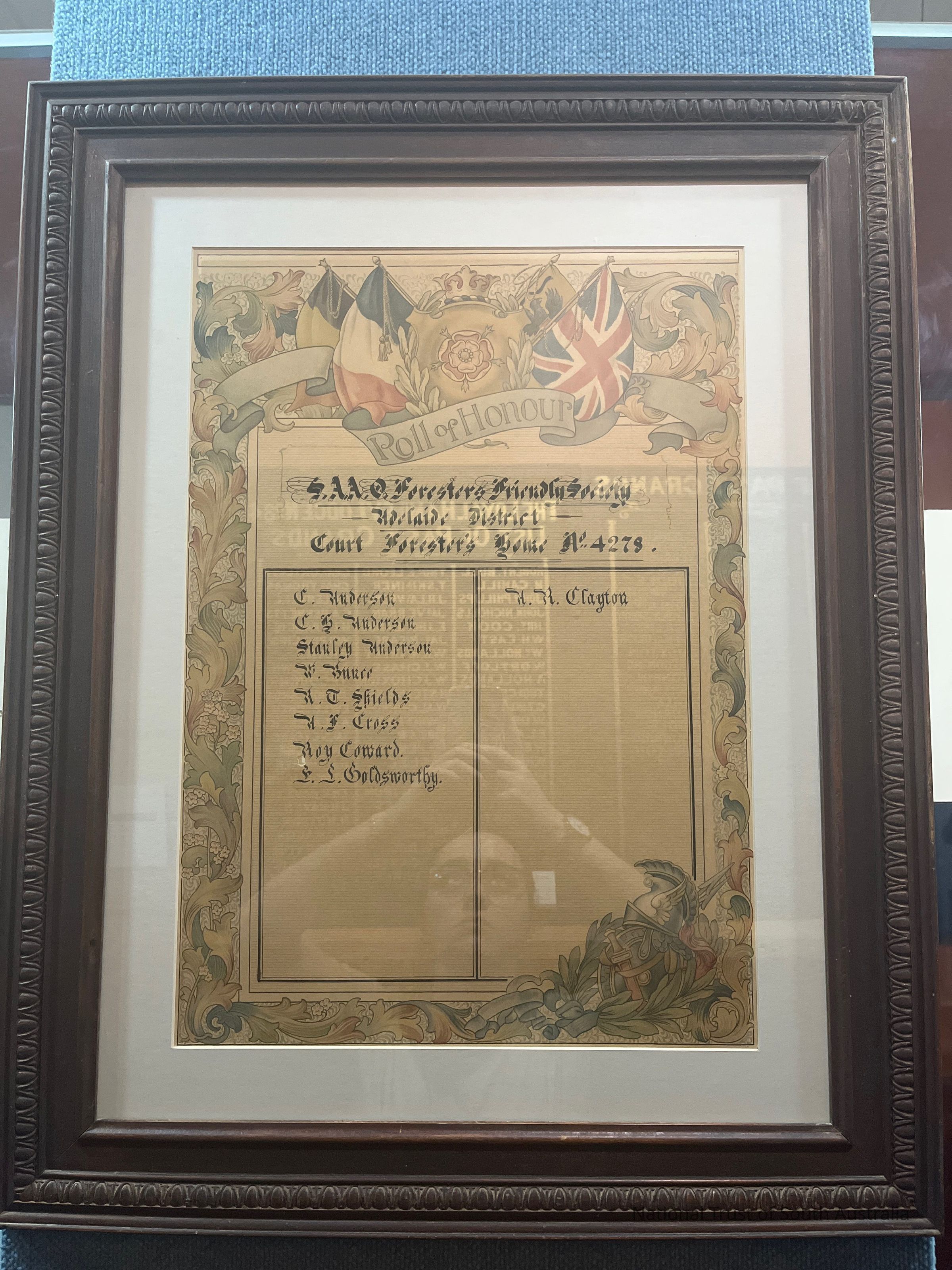 Roll of Honour for members of the SAAO Foresters Friendly Society, Adelaide District Court