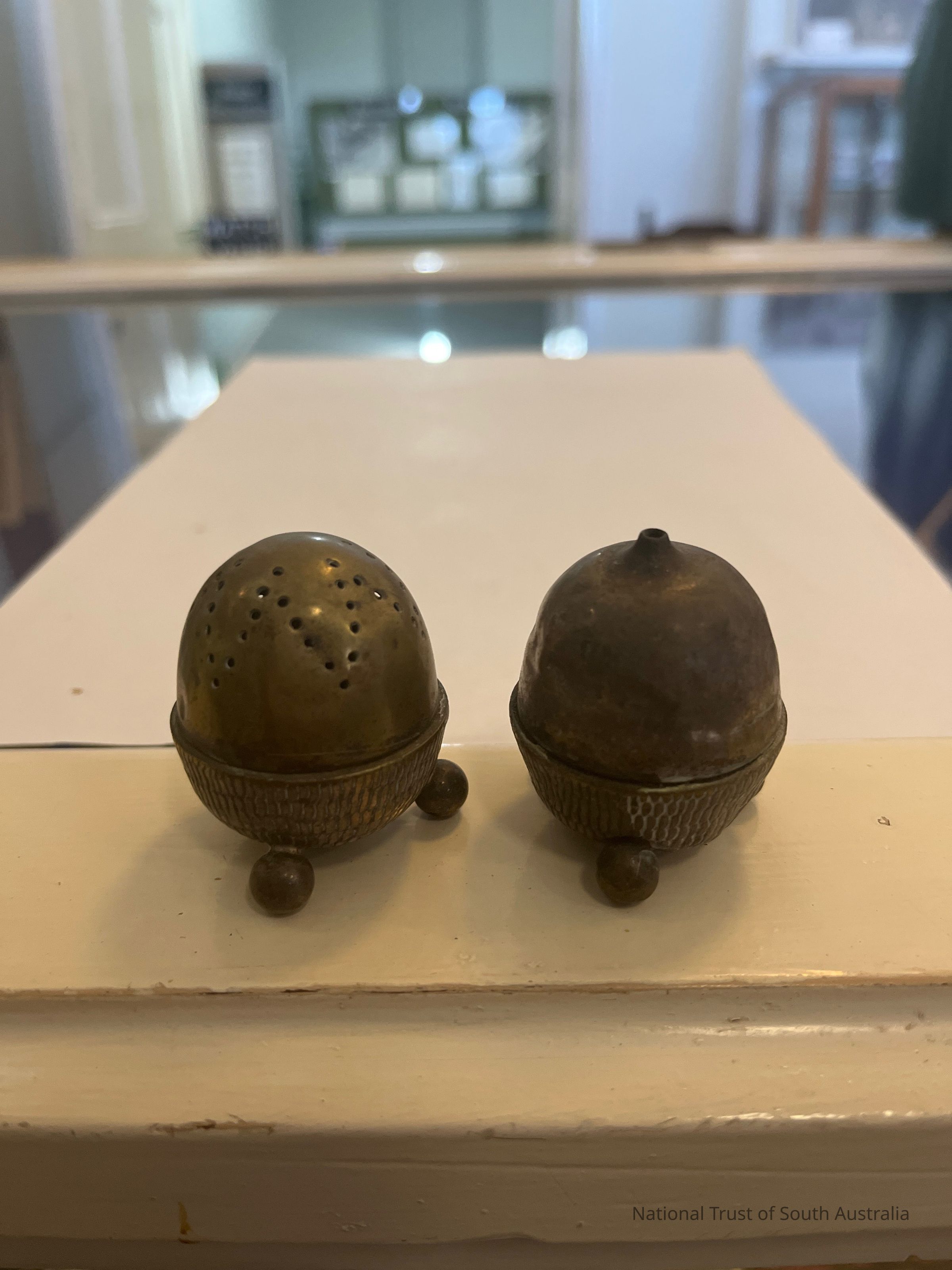 Small brass salt and pepper shakers