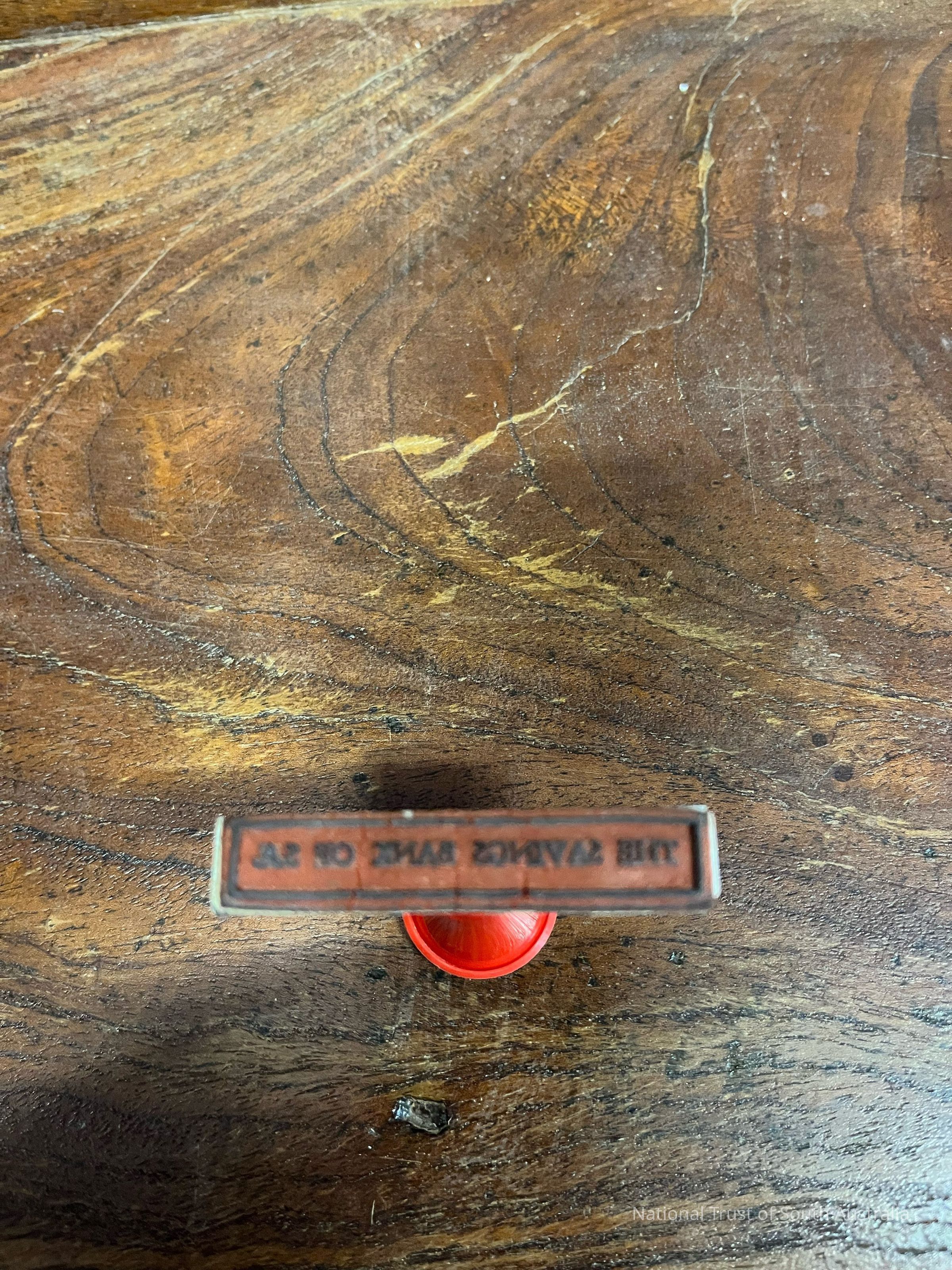 Red-handled The Savings Bank of SA stamp Located in Box 15K