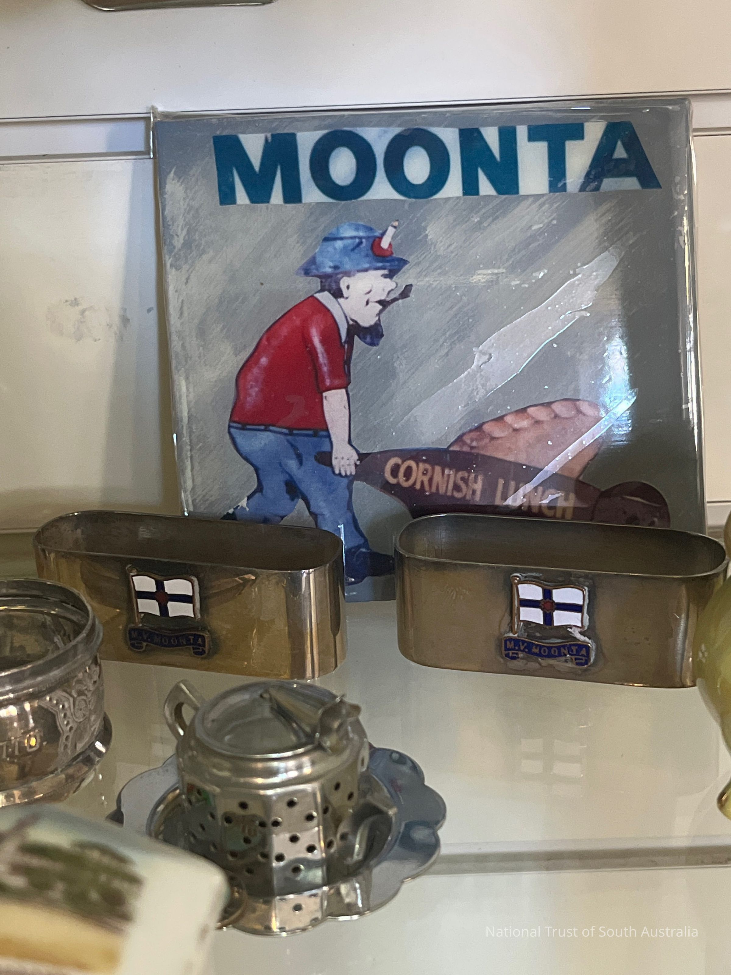 Pair of serviette rings. Each feature small flag and text: MV Moonta