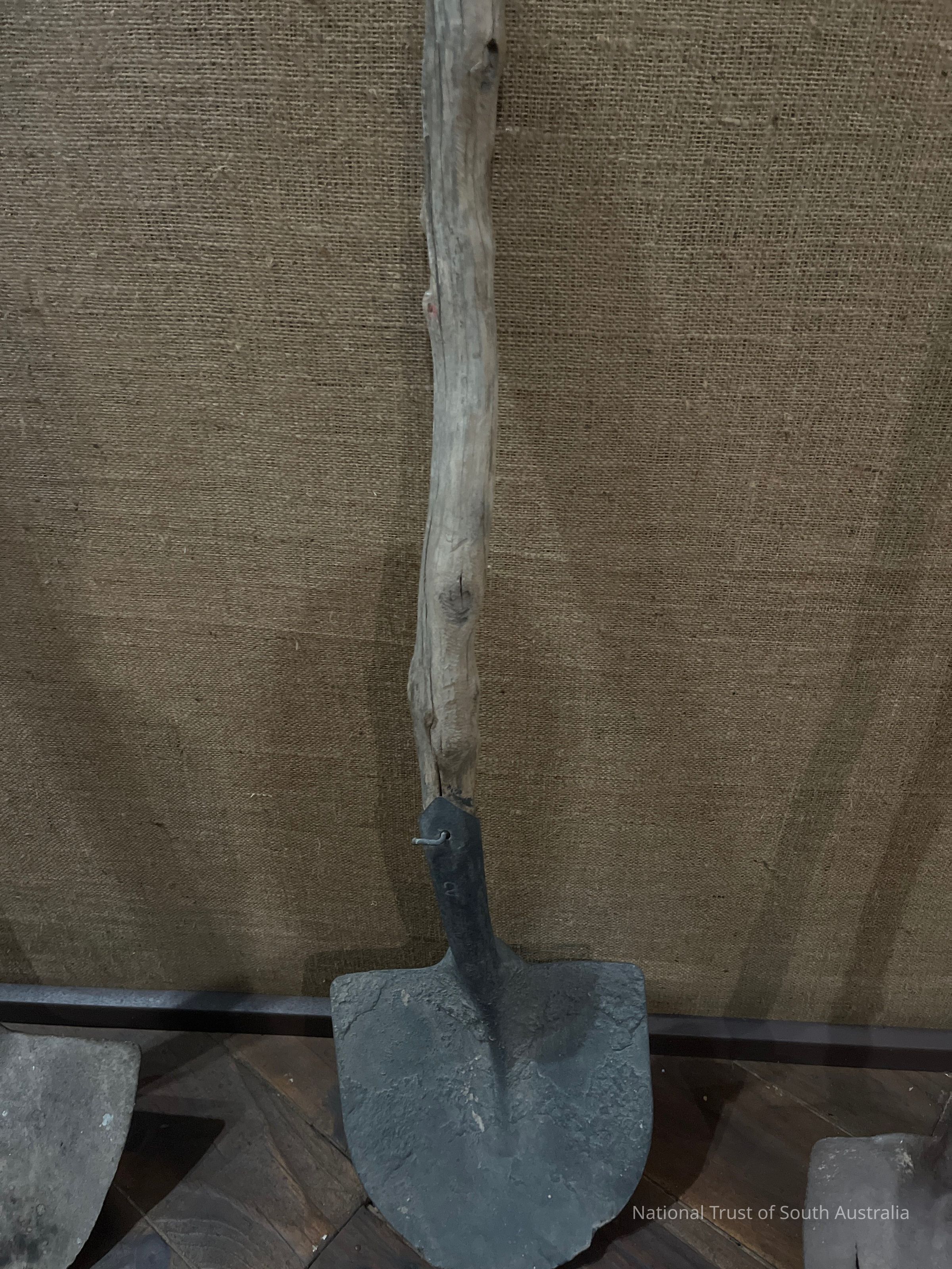 Wooden handled shovel