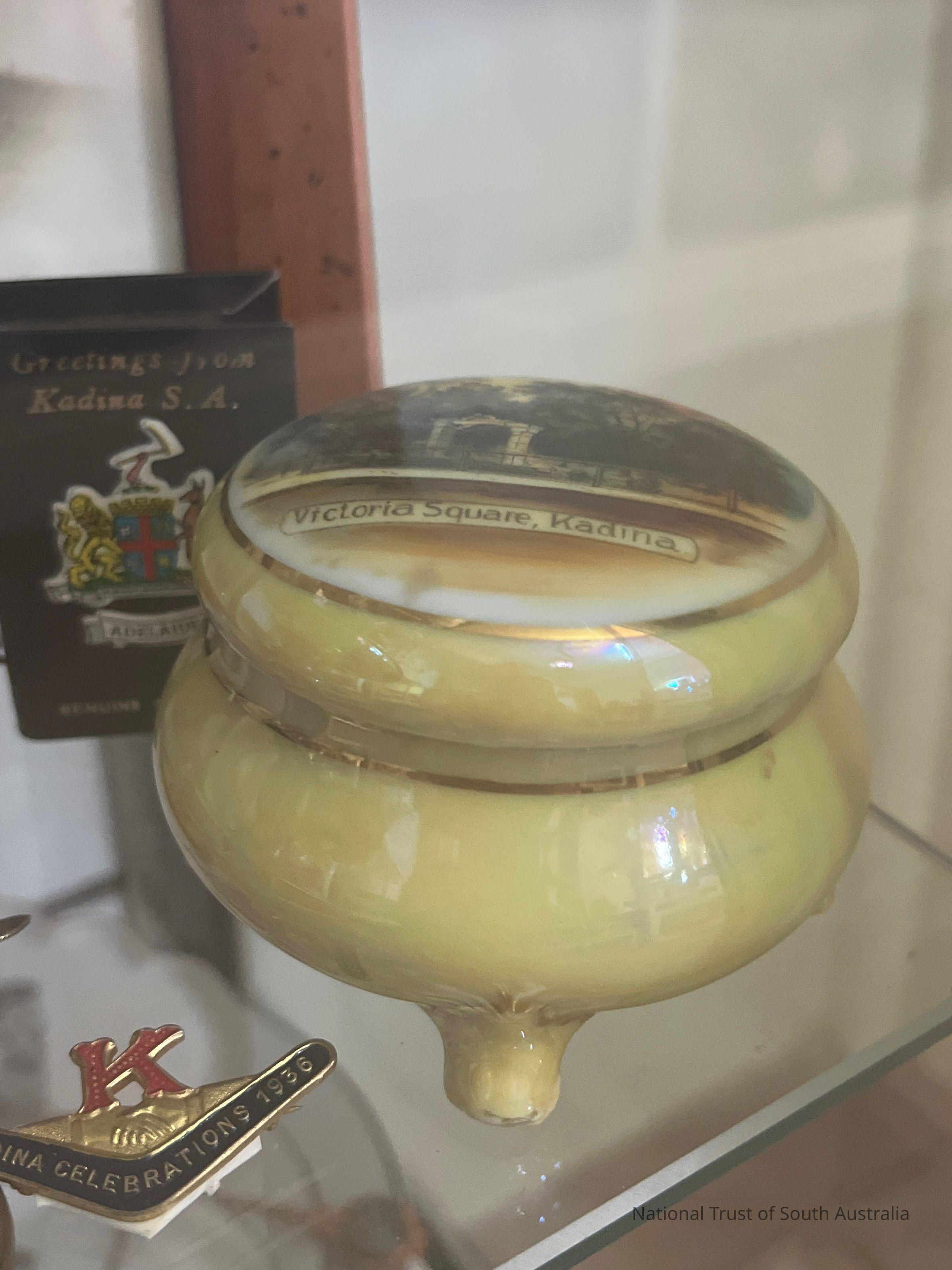 Lid features an illustration of Victoria Square, Kadina
