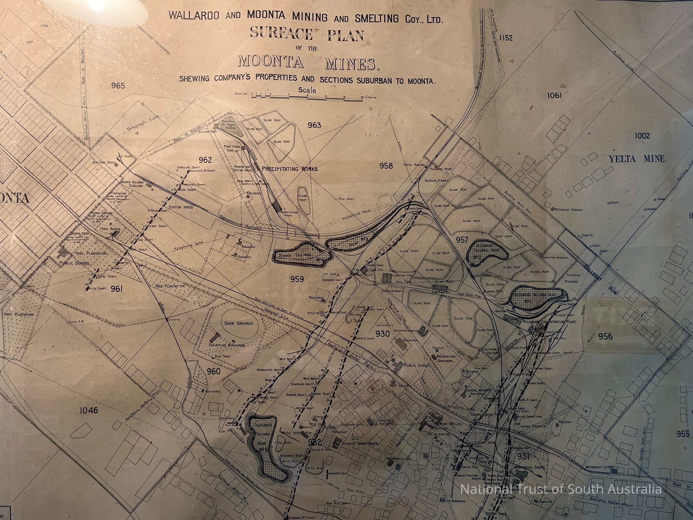 Wallaroo and Moonta Mining and Smelting Company Ltd, Surface Plan of the Moonta Mines. Shewing Company’s Properties and Sections Suburban to Moonta.Collection