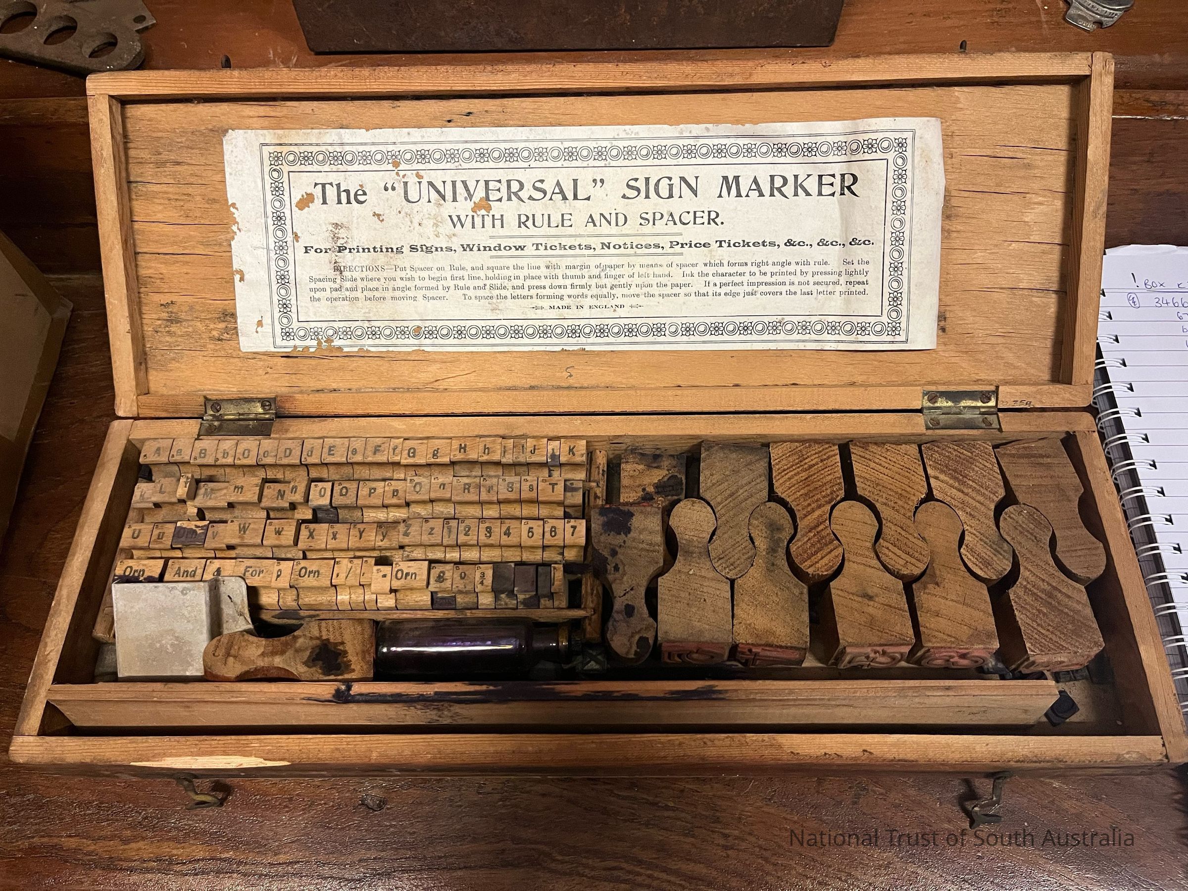 Sign marking kit with letter stamps, ruler and spacer Located Box K3