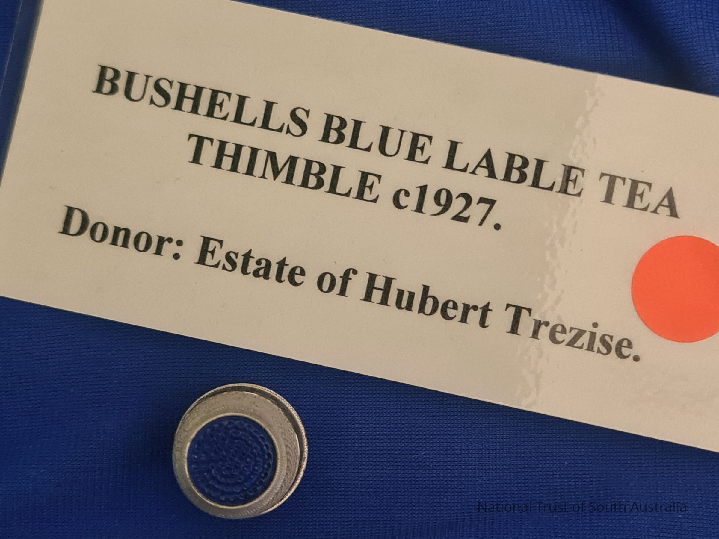 Bushells Blue Label Tea thimble circa 1927. Donated by estate of Herbert Trezise