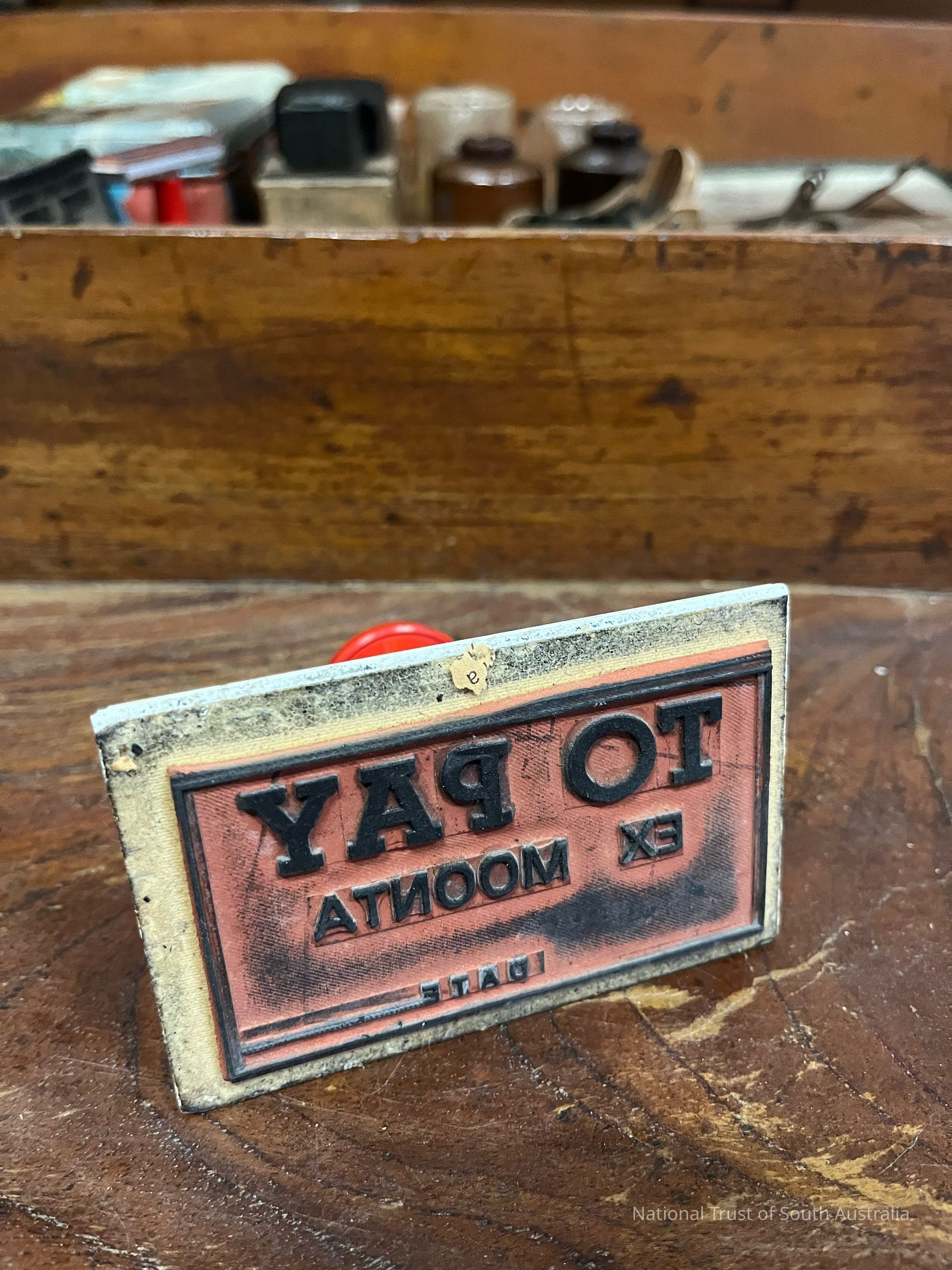 Stamp embossed with TO PAY EX MOONTA DATE —- Located in Box 15K
