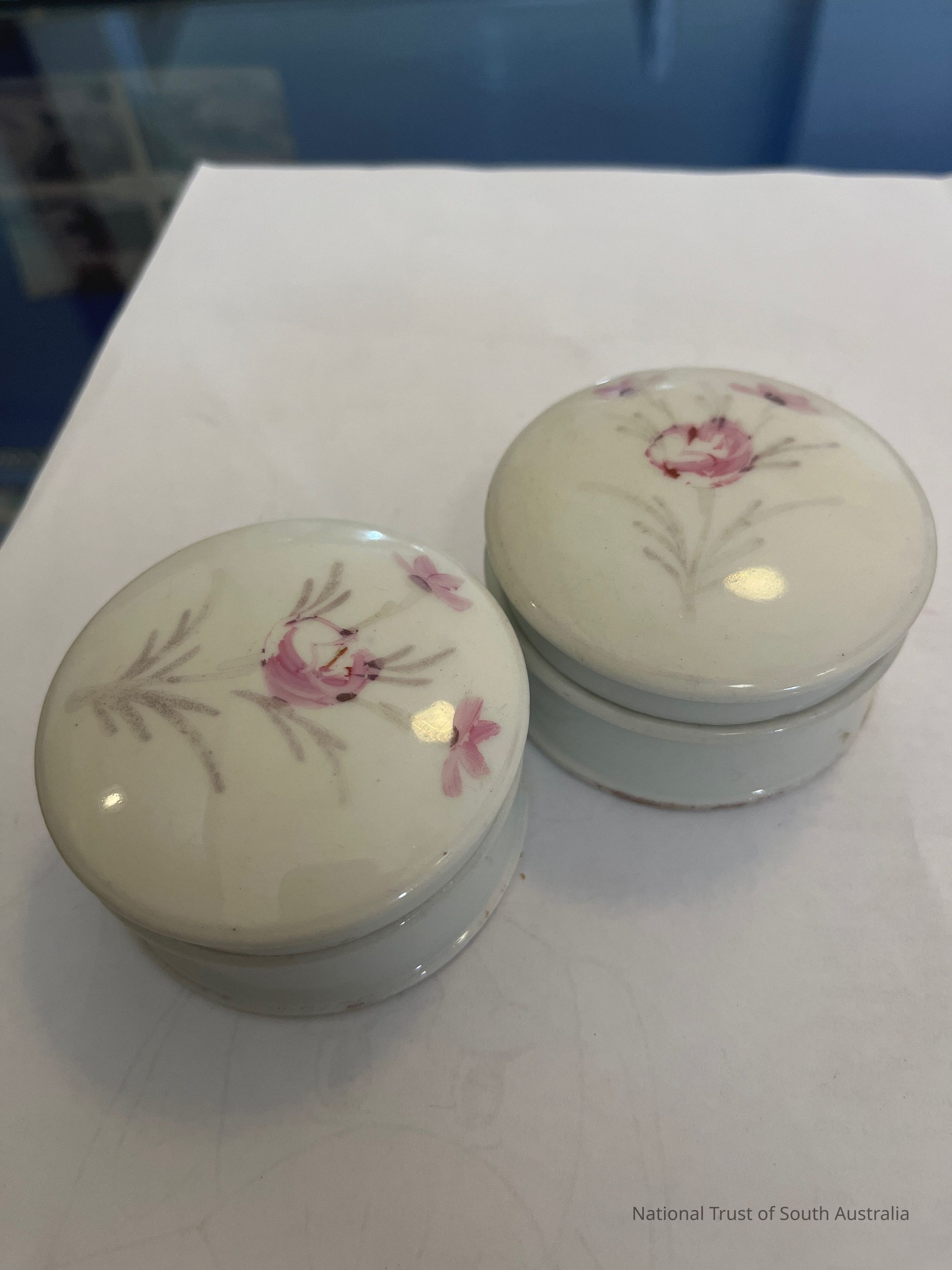 Pair of ceramic vanity jars with floral design