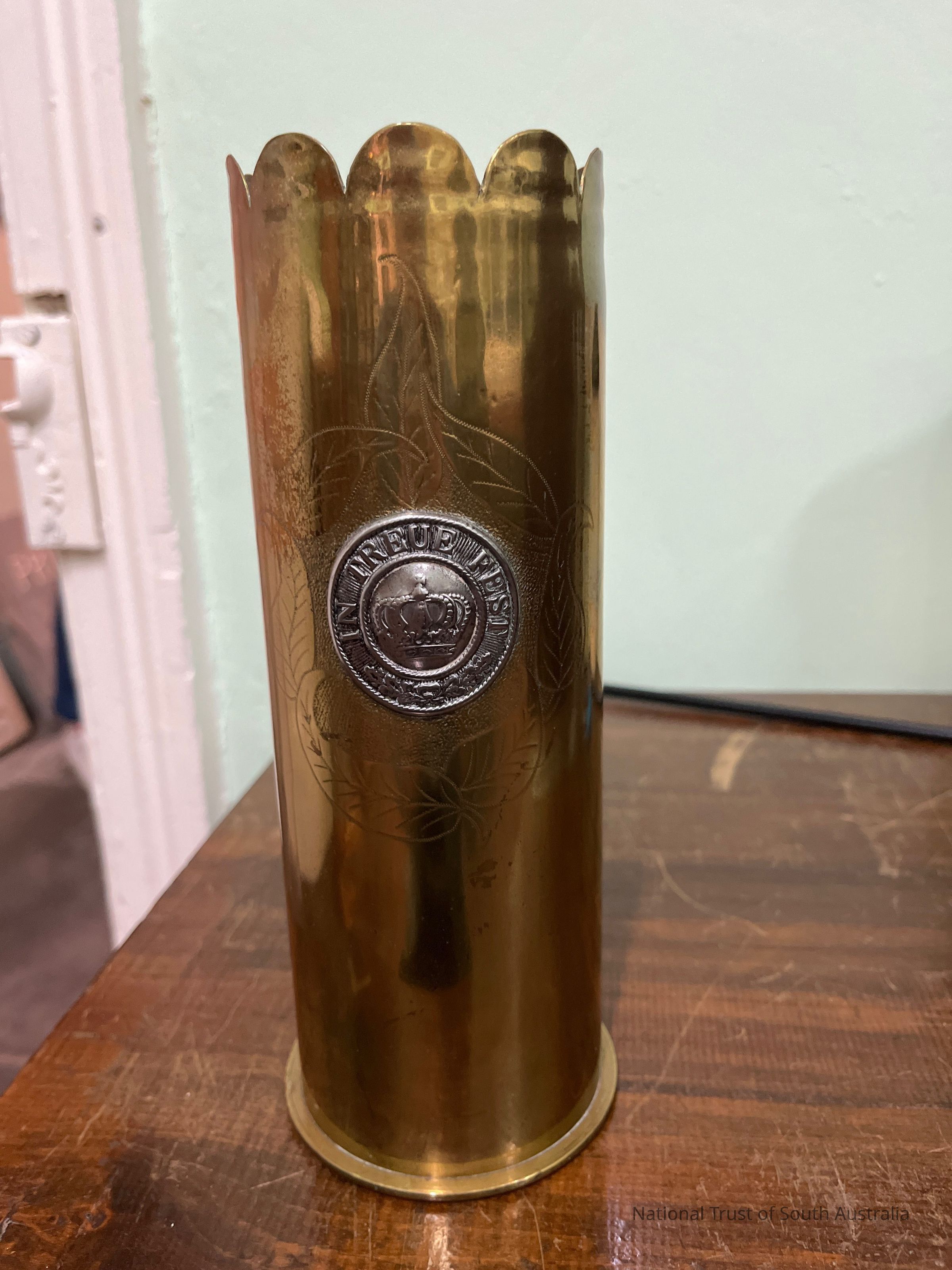 Made from an artillery shell. Text: In Treue Fest