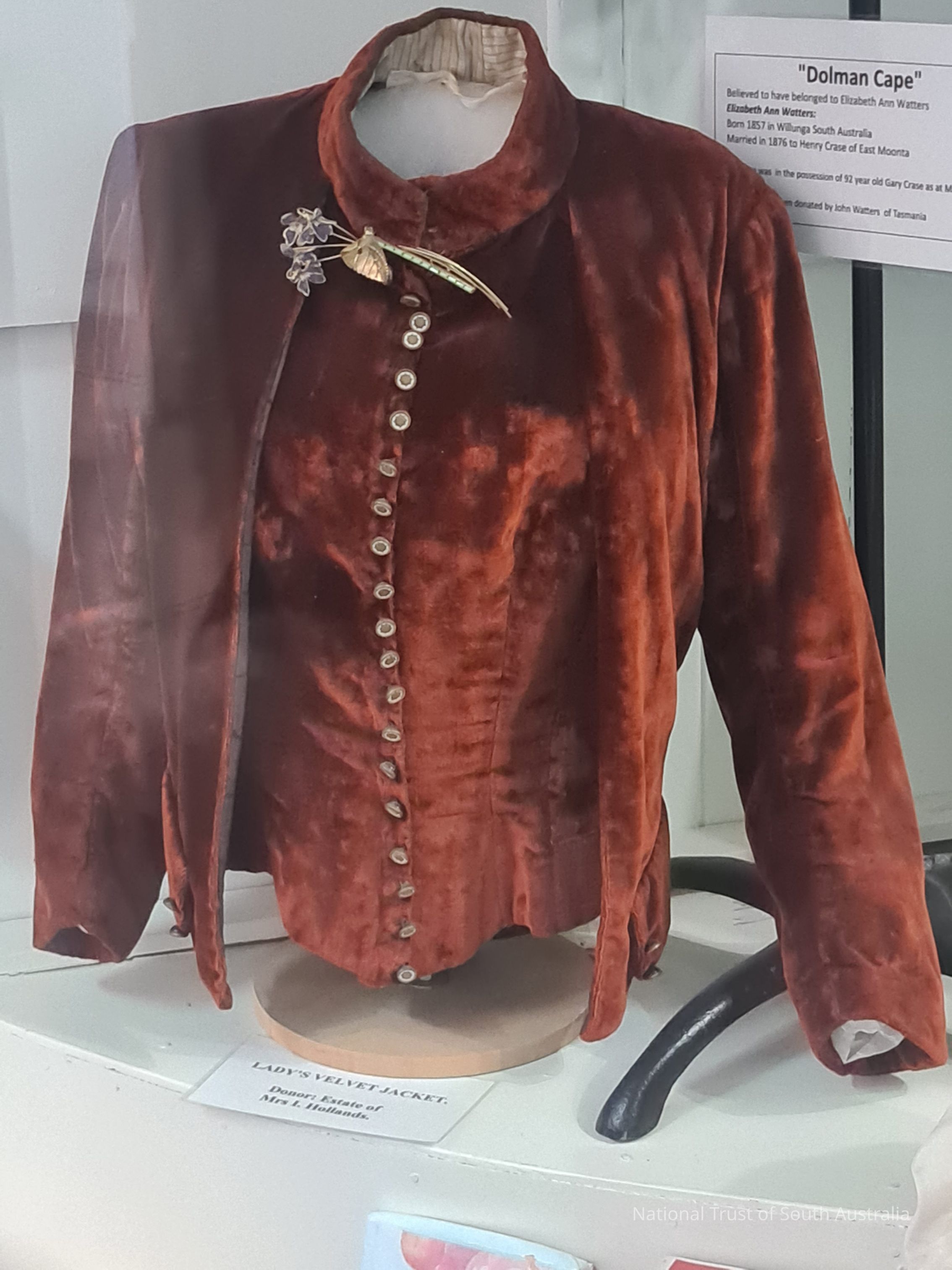 Rust coloured velvet jacket.