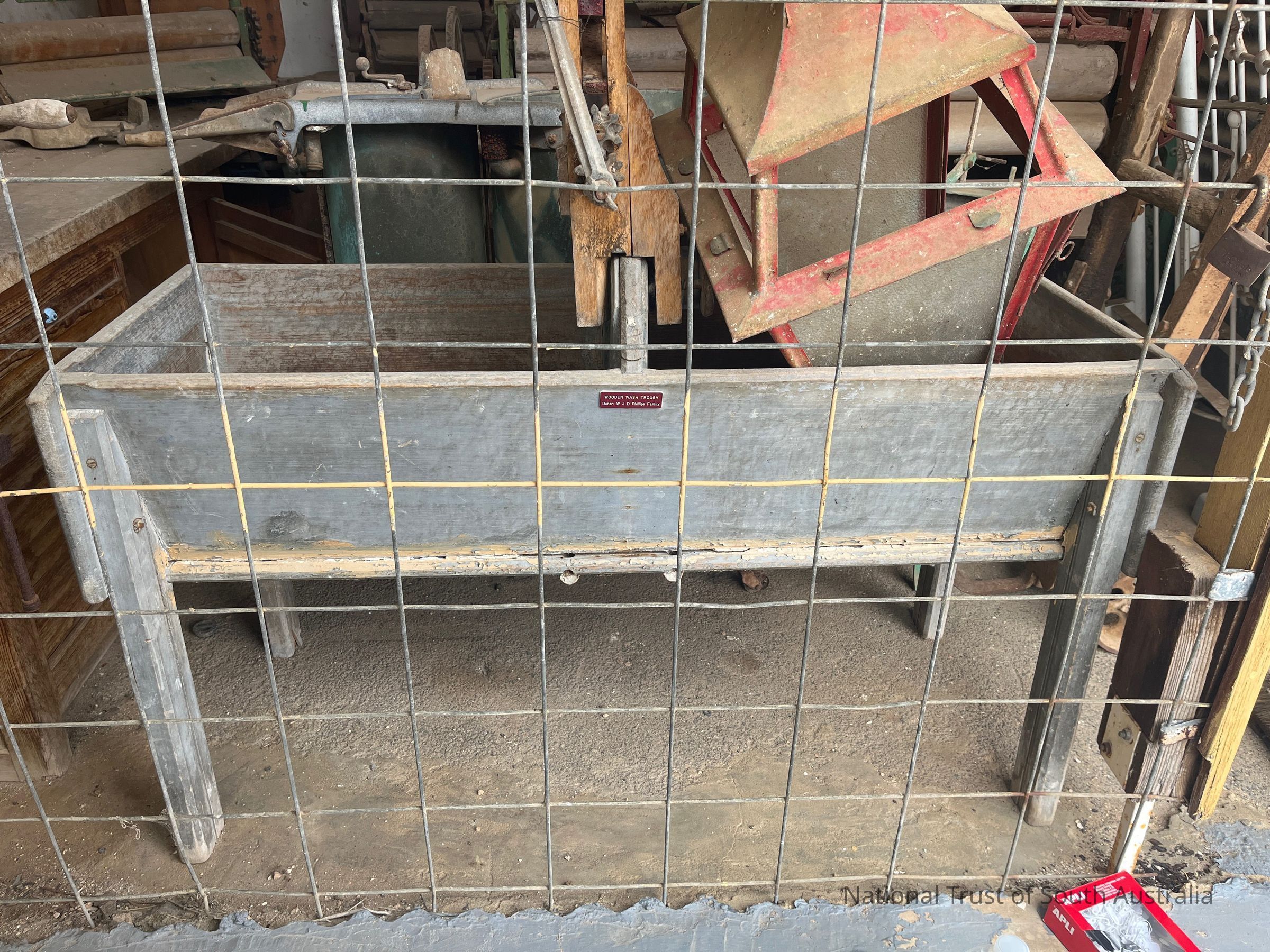 Large wooden wash trough with inbuilt mangle. Mangle was made in Britain.