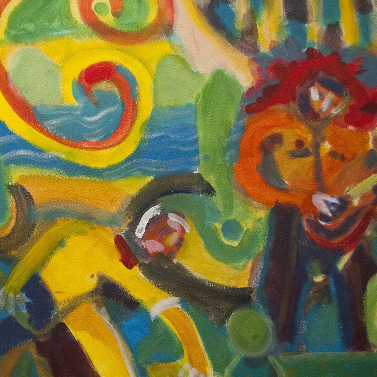Light smudging in borders, abrasion in upper-left corner. Image in good condition. Symbolic landscape with two figures.Location