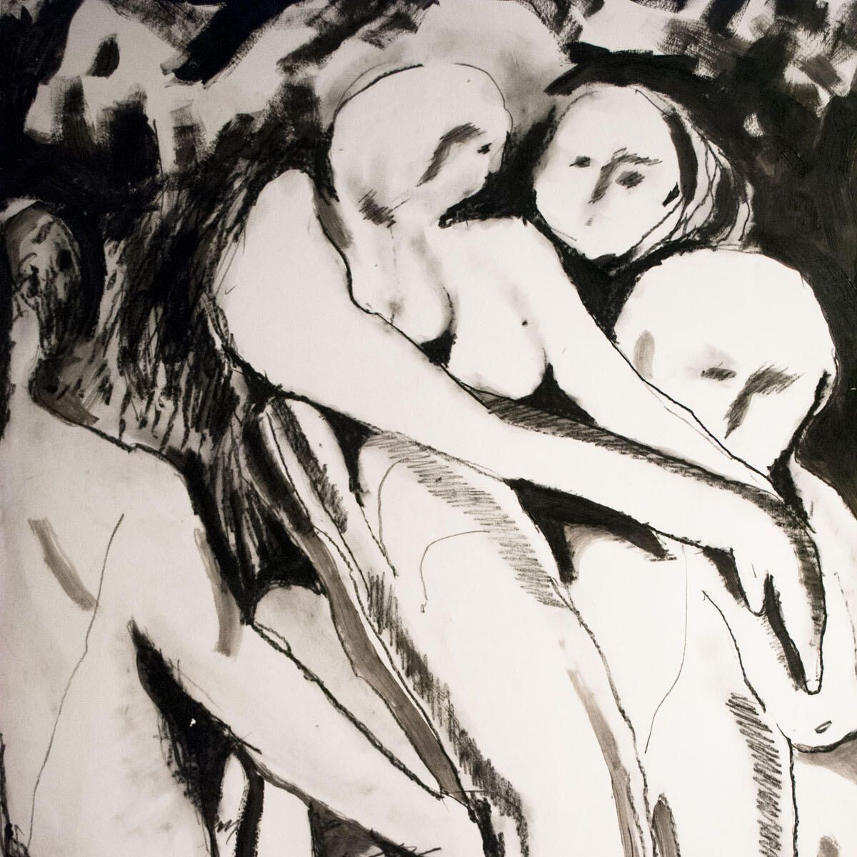 Smudges, abrasions in borders. Image in good condition. Three female figures.Artwork Details