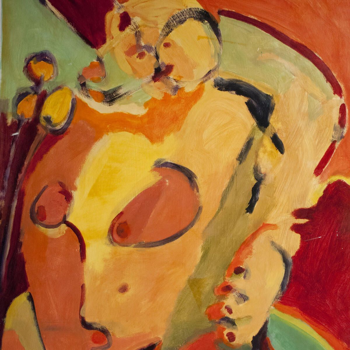 Small tears, smudges, abrasions in borders. Points of white and green pigment transfer throughout image. Female nude figure. Montserrat series.Location