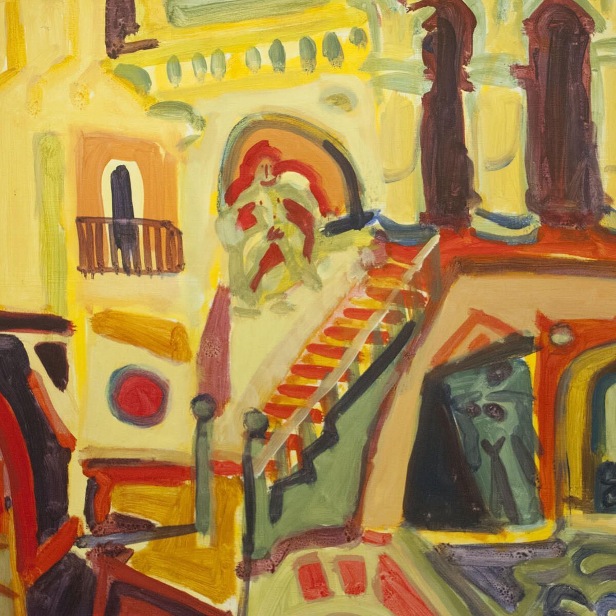 Abrasions, smudges, pencil marks in borders. Image in good condition. Cityscape. Viterbo series.Dimensions